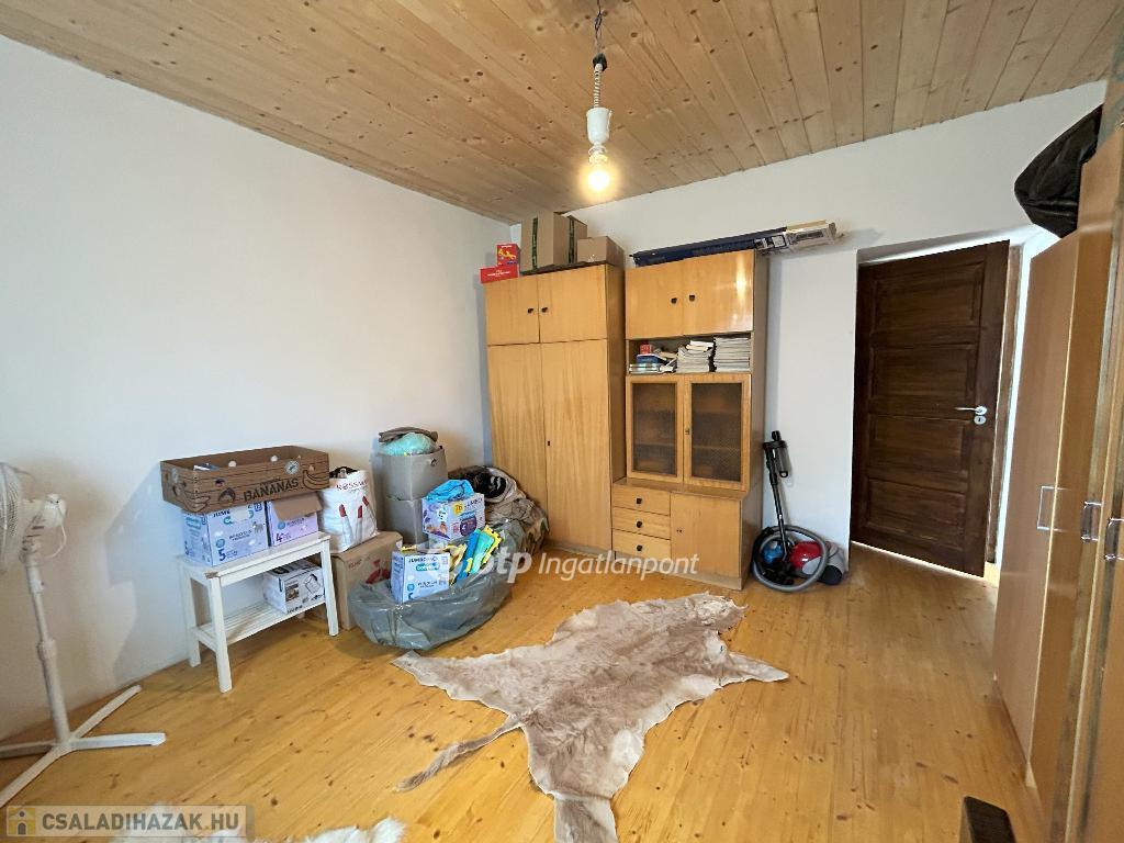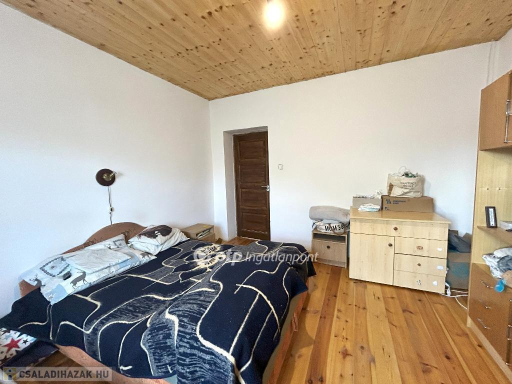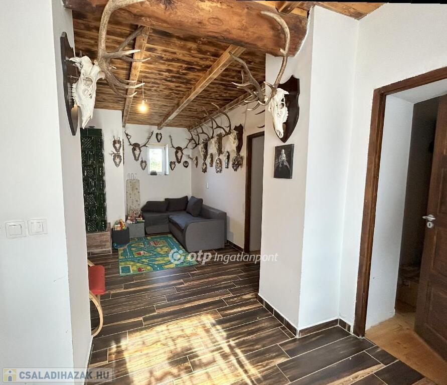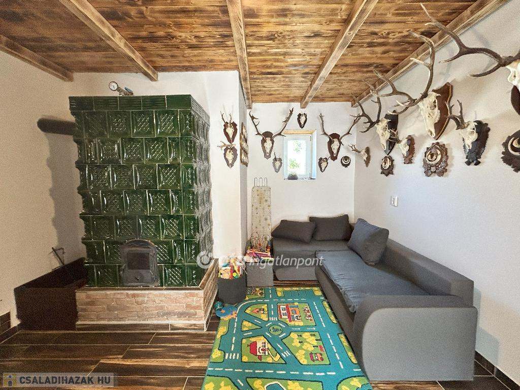 Csendes zsákfalu, nyugalom és vidéki élet várja új tulajdonosát ebben a felújított házban. A két nagy szoba hajópadlóval és gerendás mennyezettel készült, a többi helyiség kerámialappal burkolt, miközben a gerendás mennyezet végig kíséri az egész házat, hangulatos és karakteres tereket teremtve.