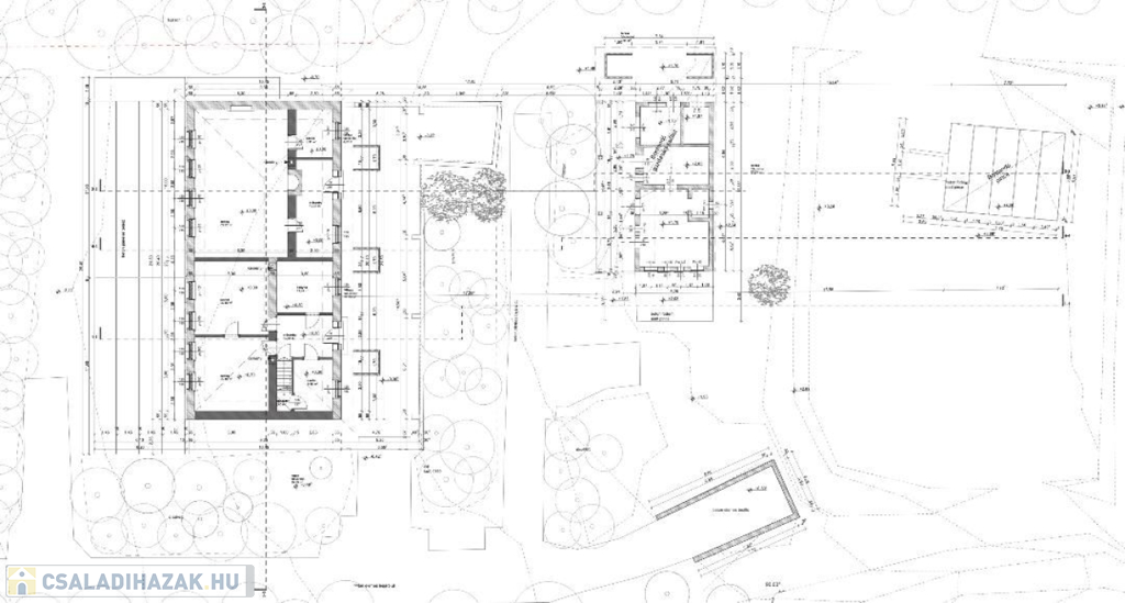 A nagy ház mögött helyezkedik el egy, az előző tulaj által építetett szerkezetkész, 2 szintes, 120 m 2 -es kisebb ház, amely állapotából adódóan bontandónak tekintendő. A telek hátsó részén kialakításra került egy 80 m 2 –es pince.
