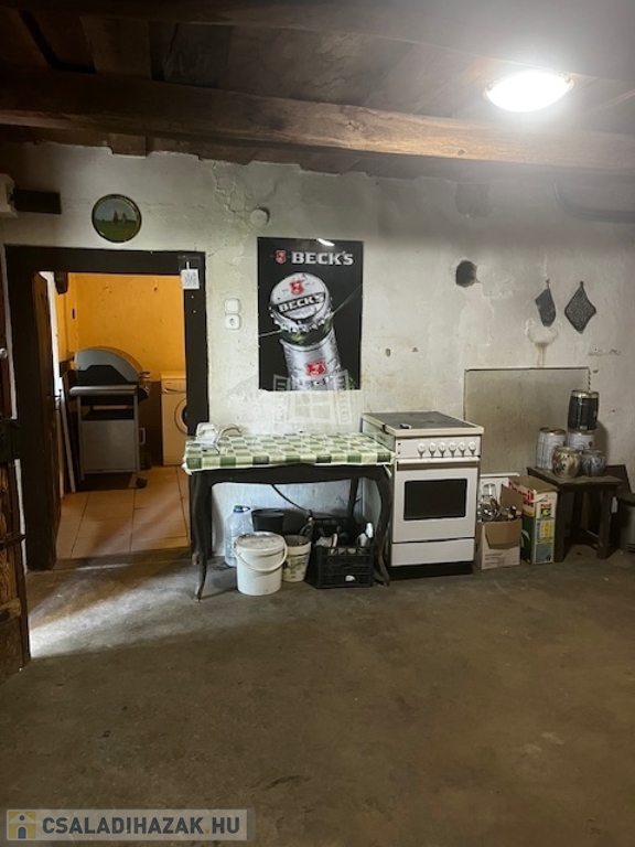 A gazdasági épület földszintje kb.1967-ben épült kisméretű téglából. A földszinten egy hosszú tornácról tudunk bemenne a 35 m2, 3 helyiségből álló részbe, ahol víz, villany már van , fűtését pedig egy vaskandallóval vagy cserépkályhával azonnal megoldhatóvá lehet tenni.
