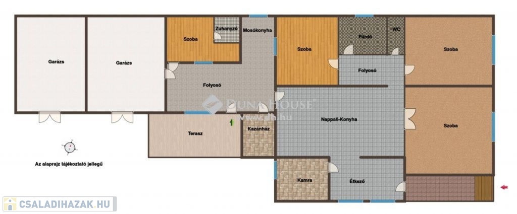 A ház átgondolt kialakítása kifejezetten ideális többgyermekes családok számára is. A fő lakótér nappali-konyha-étkezőből, 3 szobából; 2 nagyobb gyerekszobából + szülői hálószobából, zuhanyzós fürdőszobából, külön WC-ből és egy tágas kamrából áll. Ezen felül egy külön bejáratú lakrész is rendelkezésre áll, amely egy szobából és egy saját zuhanyzóval szerelt fürdőszobából áll. Tartozik még a házhoz egy külön bejáratú lakrész zuhanyzóval – kiváló lehetőség vendégek vagy idősebb családtagok elszállásolására.