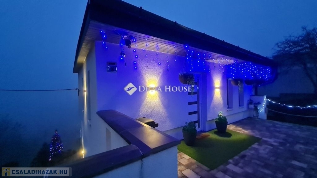 PANORÁMÁS, MODERN CSALÁDI HÁZ ELADÓ ZALAEGERSZEGEN A GÓGÁNHEGYEN PRÉMIUM KIVITELBENZalaegerszeg csendes, panorámás részén kínálunk megvételre egy 2022-ben épült, 104 m²-es kétszintes családi házat.A keletnyugati tájolású ingatlan aszfaltozott úton könnyen megközelíthető. A 1405 m²-es telek felső részén gondosan karbantartott, parkosított kert található fenyőkkel, díszbokrokkal és számos értékes dísznövénnyel, amely nyugodt, intim környezetet biztosít.A telek alsó része jelenleg szabad terület, gyümölcsfák ültetéséhez ideális terep. A ház utcafronti része kerítéssel ellátott, míg az alsó terület még nincs bekerítve.A ház kialakítása:- két külön bejáratú lakrész, amely minimális ráfordítással akár egymástól függetlenül is tud funkcionálni.- jelenleg a ház egy nappali + három szoba elrendezéssel van napi használatban, de két nappali + két szoba elrendezéssel is használható.Főbb jellemzők: 3×25 A ipari áram, H-tarifás rendszer Az épület korszerű hőszigeteléssel ellátott, amely hozzájárul az energiahatékony, gazdaságos fenntartáshoz. Elektromos fali panel minden heyliségben + 3 db hűtő-fűtő klíma Kandalló a meghitt hangulatért Minden szobában TV-kiállás Gépesített konyha LED-világítás az egész ingatlanban Kamerarendszer Műanyag nyílászárók redőnnyel, szúnyoghálóval Külső árnyékoló a teraszonKényelmi extrák: 40 m²-es panorámás, részben fedett terasz 7 m²-es erkély a felső szinten Igényesen kialakított belső lépcsőház a két szint között Két fürdőszoba:o egyikben kád és zuhany +WCo másikban zuhanyzó WC-vel Külső tároló Épített bográcsozóParkolás: Elektromos kapuval ellátott fedett beálló 1 autó számára A ház előtt további 3 autó parkolására kialakított helyEz az ingatlan nemcsak egy ház, hanem élettér, ahol a modern műszaki tartalom, a természet közelsége és a panoráma valódi otthonélményt nyújt. Ne hagyja ki ezt a kivételes lehetőséget tekintse meg személyesen!