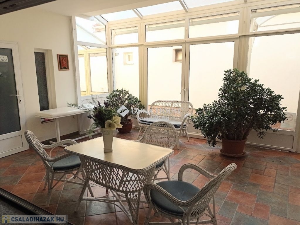 -a földszinten működő igényes kozmetika 70 m2-en, valamint egy külön lakrész fürdővel, konyhával, szobával, valamint pazar télikert és szauna