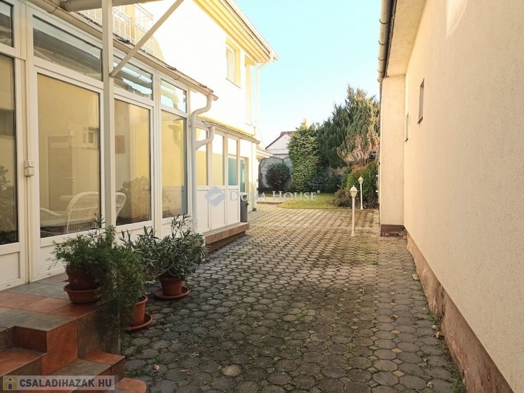 -a földszinten működő igényes kozmetika 70 m2-en, valamint egy külön lakrész fürdővel, konyhával, szobával, valamint pazar télikert és szauna