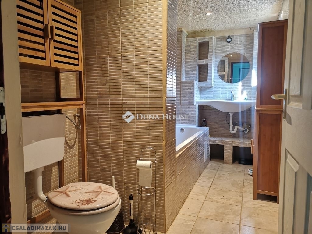 A kétszintes ház alsó szintjén egy háztartási helyiséget és egy konyhának is kialakítható szobát találunk. A felső szintre az épületen belül juthatunk el, itt egy szinten, egy fürdőt, konyha-étkezőt és hozzáépítéssel egy hálószobát alakítottak ki. Az 1025 nm-es telken veteményes, gyümölcsfák, garázs és fáskamra is megtalálható. Víz és villany bekötésre került, a szennyvízhálózatra csatlakozásra is van lehetőség az utcában. Az ingatlan sajnos elhagyatott egy ideje, a szobában lévő beázás gyors javításával és az udvar kitisztításával lakhatóvá alakítható.Ideális választás lehet, akár a hétvégi pihenéshez, akár lakhatásra keres házat.
