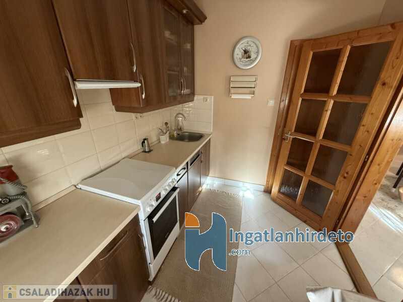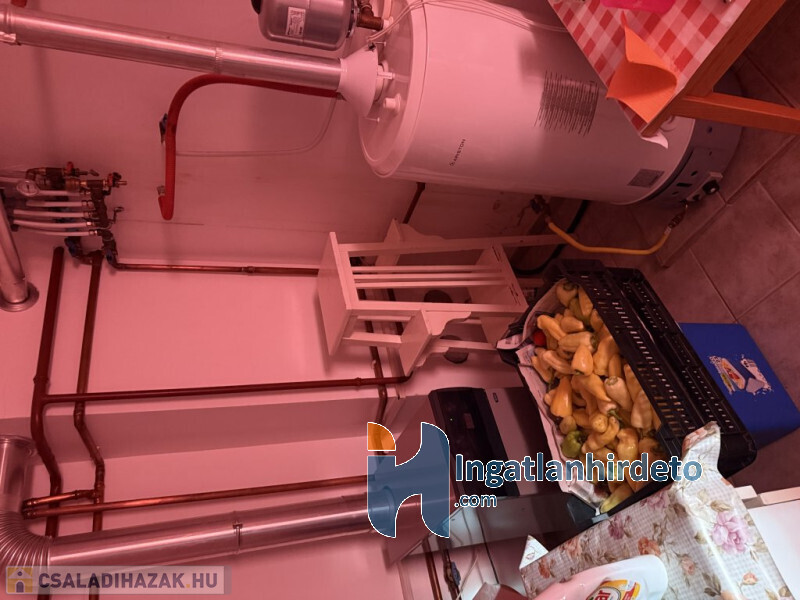 Elhelyezkedése: Belterület Állapota: Kiváló Komfort besorolása: Dupla komfortos Építési éve: 1995 Alapterülete: 300 m2 Telekterülete: 738 m2 Szobák száma: 7szoba Közművek: Gáz Gázellátás: Vezetékes Fűtés módja: Gáz, Fa Fűtés típusa: Központi gázkazánnal, Kandalló, Egyéb Homlokzat állapot: Jó Építési mód: Tégla Tető formája: Magas Tető anyaga: Cserép, Beton tetőcserép Parkolási lehetőség: Garázsban Kilátás: Utcafronti kilátás, Udvari kilátás, Városi panoráma Napelem: Nincs adat Jellemzői: Alacsony rezsi, Csendes környék, Jó közlekedés, Két bejárat, Redőny, Fűtött garázs, Étkező, Udvari terasz, Beépített szekrény, Beépített konyhabútor, Autóbeálló, Kert, Kerítés, Egyedi vízóra , Zöldterület, Beépített tetőtér Energetikai besorolás: Nincs adat Egyéb jellemzők: Erkély, Terasz, Pince Tv, Internet: Kábeltévé, Internet, Vezetékes telefon Közelben: Iskola, Óvoda, Bolt Terhelések: Tehermentes ingatlan