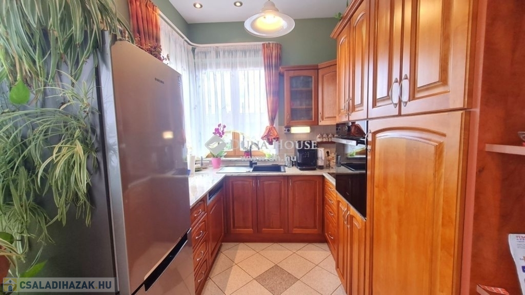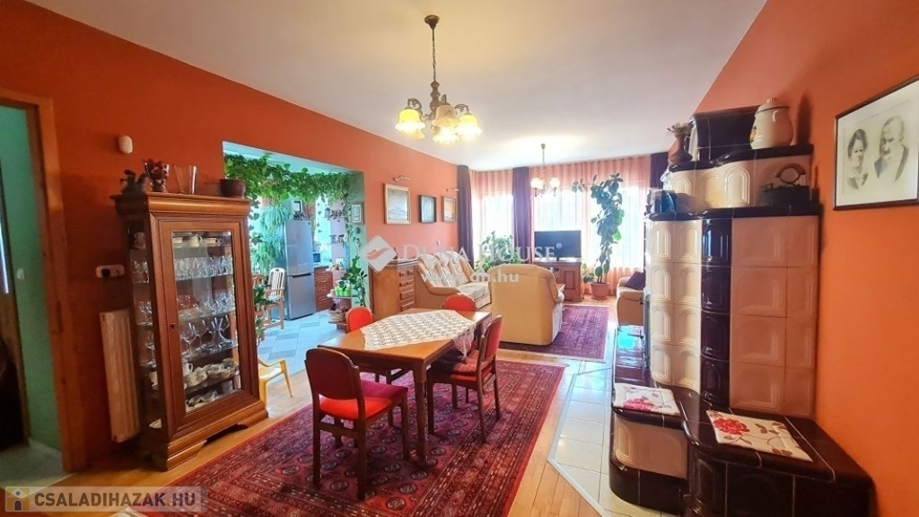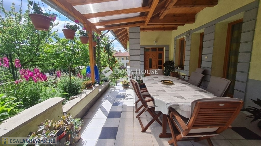 ZAVARTALAN NYUGALOM, CSALÁDI OTTHON Zalaegerszegen!1, 2, 3, gyerek + Nagyi? Mindenki elfér, csak gyertek ! Akár több generáció lakhatása is megoldható egy helyen!Zalaegerszeg nyugodt kertvárosi részén 1127 nm-es telken áll ez a kitűnő állapotú, 217,5nm es hasznos alapterületű , nappali + 4 hálószobás, dupla garázsos családi ház. Szükség esetén a fűtött garázsszinten lévő nyárikonyha átalakításával egy 5. hálószoba is kialakítható.Nagyfeszültségű vezeték nincs a környéken !Az épület 2004-ben épült téglából, hőszigetelt, cserépfedésű és remekül karbantartott.A 28nm-es árnyékos, fedett teraszról a házba lépve az előszobán át jutunk a 15nm-es konyha-étkezőbe, illetve a hatalmas, 37 nm-es nappaliba. A kellemes hőmérsékletről télen a cserépkályha és a gáz-cirkó kazán gondoskodik.A lakószinten még 4 hálószoba -minden szoba tágas, kényelmes 12,6 és 12,47, és 12-12 négyzetméteresek-, 2 fürdőszoba, -ebből egyik WC-vel felszerelt-, külön WC, kamra és közlekedő szolgálja a család kényelmét. A lakószintről közvetlen kapcsolat a garázsszintre, ahol a mosókonyha zuhanyzóval és WC-vel, kamra, tároló, kiskonyha és a két autóbeállós garázs került kialakításra. A tároló falának elbontásával akár 3 autó parkolása is megoldható a garázsszinten, illetve a kiskonyha wellness helyiség vagy egy plusz szoba kialakítására is alkalmas.Mennyi szuper dolog van itt !- 28nm-es fedett terasz,- fűtött dupla garázs és előtte térkövezett udvar a további autóknak- cserépkályha- beépített sütő, főzőlap, elszívó, mosogatógép a konyhabútorban- elektromos kapu- kaputelefon- önálló faház a kertben ami műhelynek is hasznosíthatóA telek gondos kezek által karbantartott, parkosított, számos gyümölcsfának ad helyet.Az épület egy zsákutcában található így a csend és a nyugalom garantált, azonban épp elég közel a főúthoz, hogy gyalog is kényelmesen elérhesd a tömegközlekedést!Szóval, nem tudsz olyat kitalálni, ami itt ne lenne?!!Na jó, medence és teniszpálya nincs, nyertél!Ennél többet már csak akkor nyerhetsz, ha ideköltözöl a családoddal!Hívj most és már mehetünk is megnézni.
