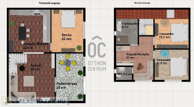 A két ingatlan, akár 3 lakássá is alakítható, hiszen minden meg van ahhoz, hogy kényelemesen külön de mégis egymás közelében élhessen a család.