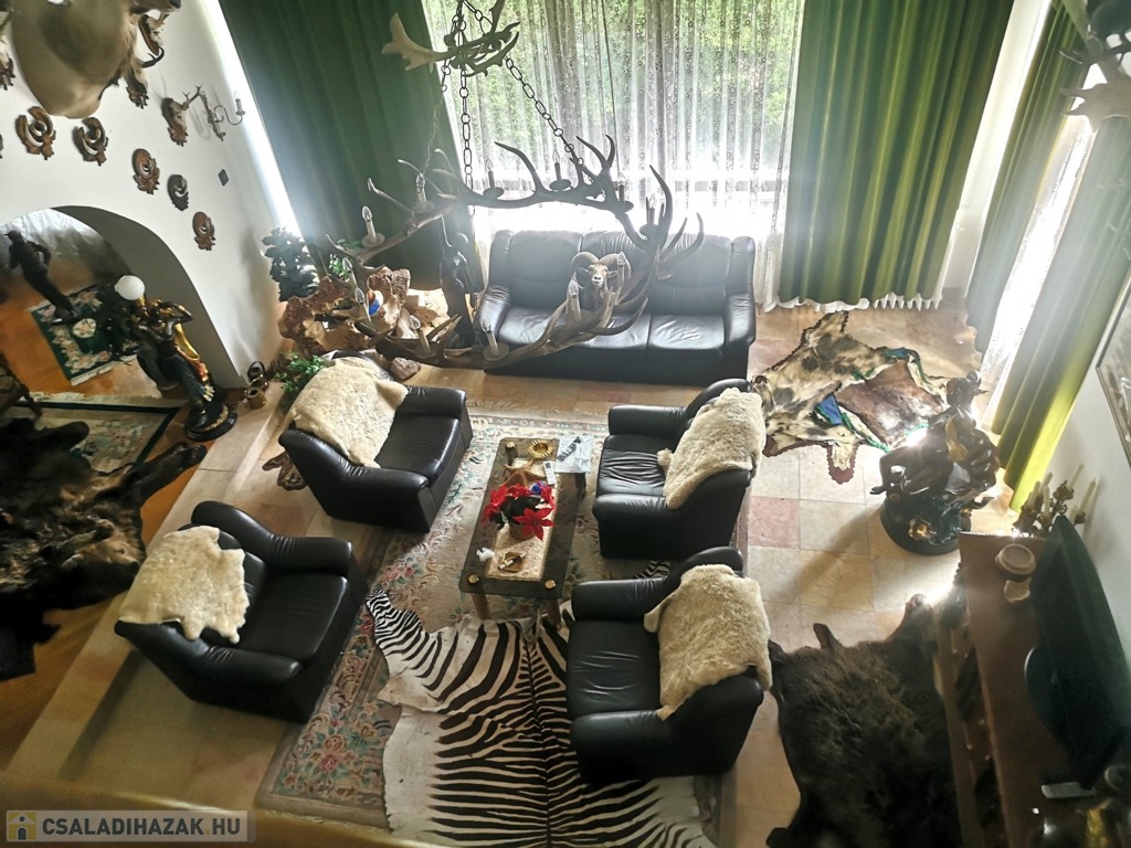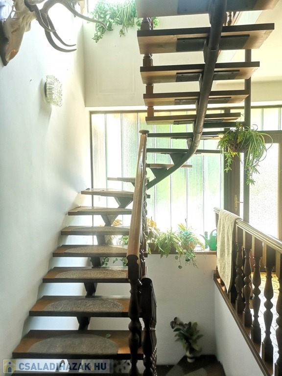 Zala vármegye, Zalaegerszeg, 530m2-es családi ház eladó. A zalai megyeszékhelyen, Alsóerdő közelében található ingatlan 1897m2-es, parkosított telken helyezkedik el. Az udvaron vízforgatós medence, kerti kiülők, szaletli, stb. szolgálja az ott tartózkodók kikapcsolódását. A 80-as évek elején épült, tehermentes ház garázsszintjén a duplagarázson kívül kazánház, 2 tágas tároló, lépcsőház, közlekedő, szauna, konyha és borozó, a fogadószinten nagyméretű, légkondicionált, teraszos nappali, két erkélyes szoba, fürdőszoba, lépcsőház, közlekedő, konyha étkezővel és kamra, az emeleten további négy szoba, (melyekből kettő erkélyes), gardrób, közlekedő, lépcsőház és fürdőszoba, végül a beépített tetőtérben társalgó, tároló és konditerem került kialakításra. A bútorozott ingatlan melegéről gáz-, és vegyes tüzelésű kazán gondoskodik, radiátoros hőleadókkal.