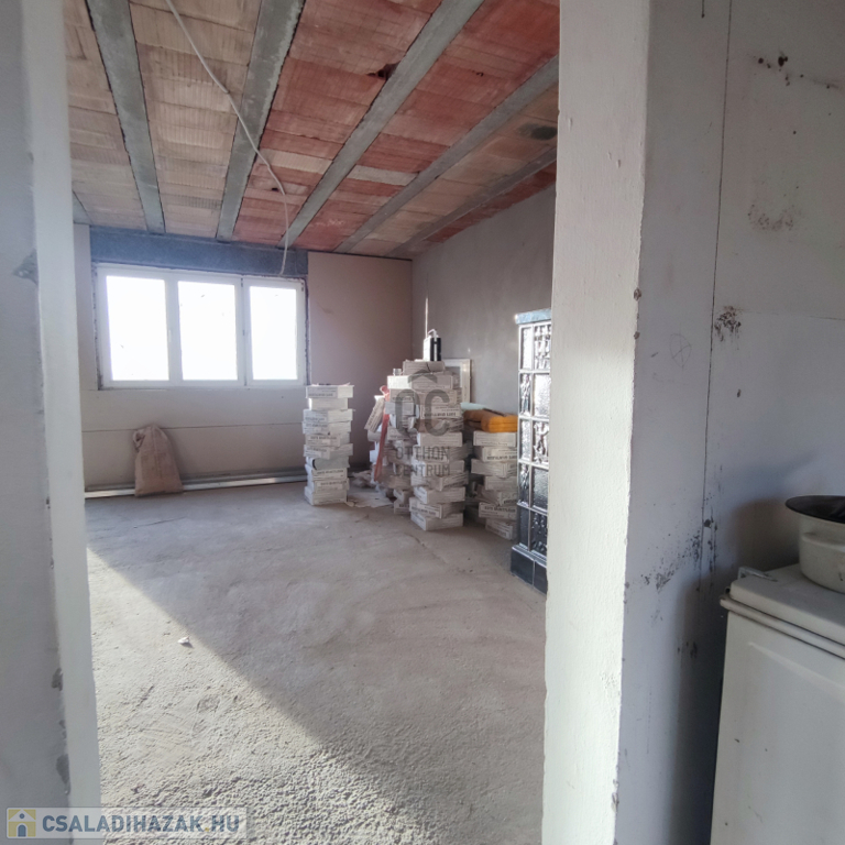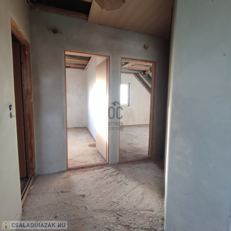 A felső, tetőtérben kialakított (42 m2 hasznos alapterületű) szinten további szobákat illetve fürdőszobát kívánt kialakítani a jelenlegi tulajdonos, de az egész ház tovább alakítható az új tulajdonos által.