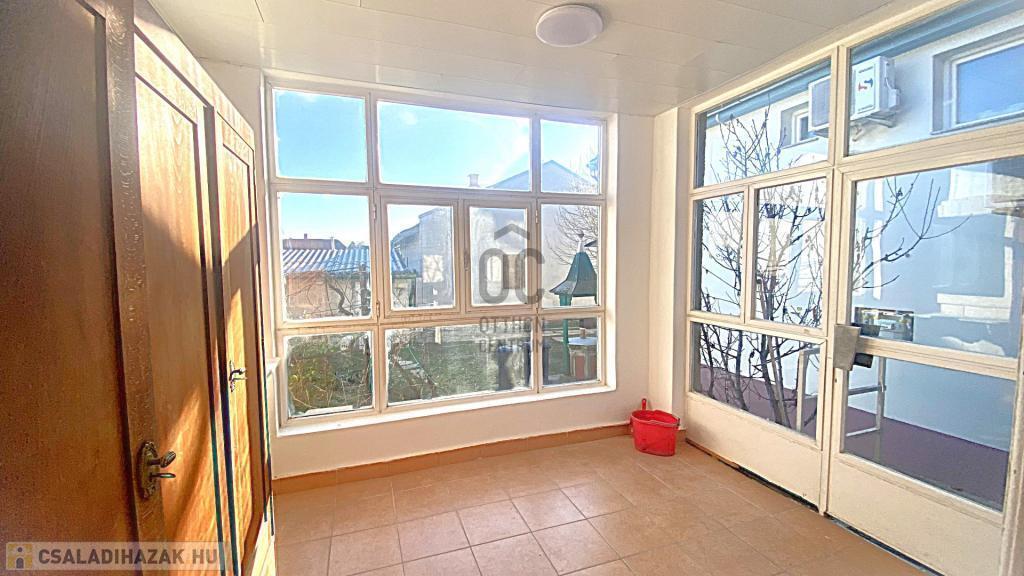 Eladó egy 104 m²-es polgári stílusú ház, 2 tágas szobával, nappali-étkezővel, konyhával, télikerttel és kis, könnyen gondozható kerttel.