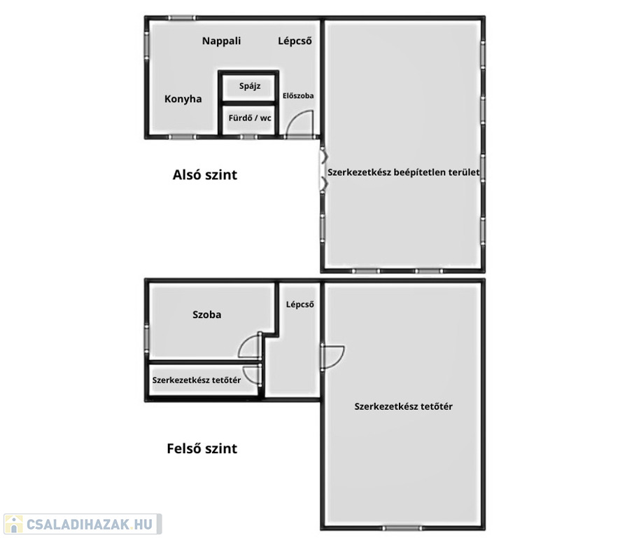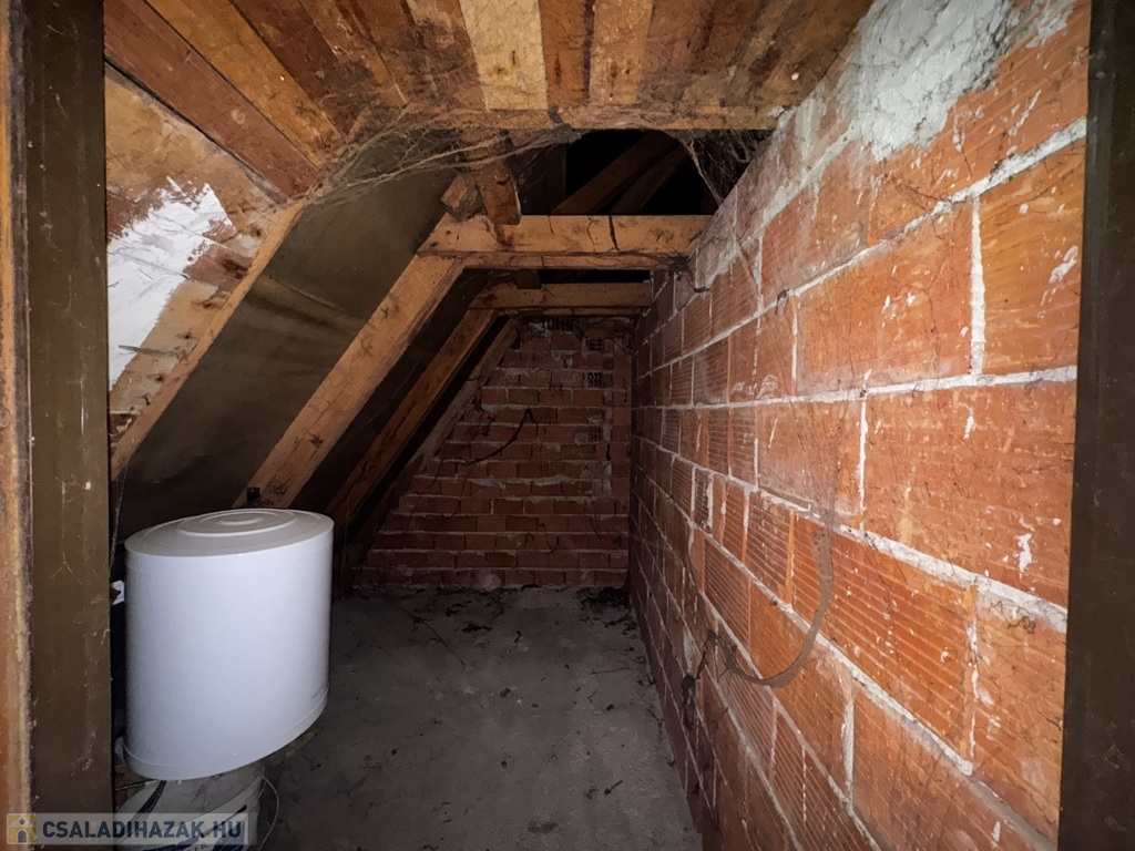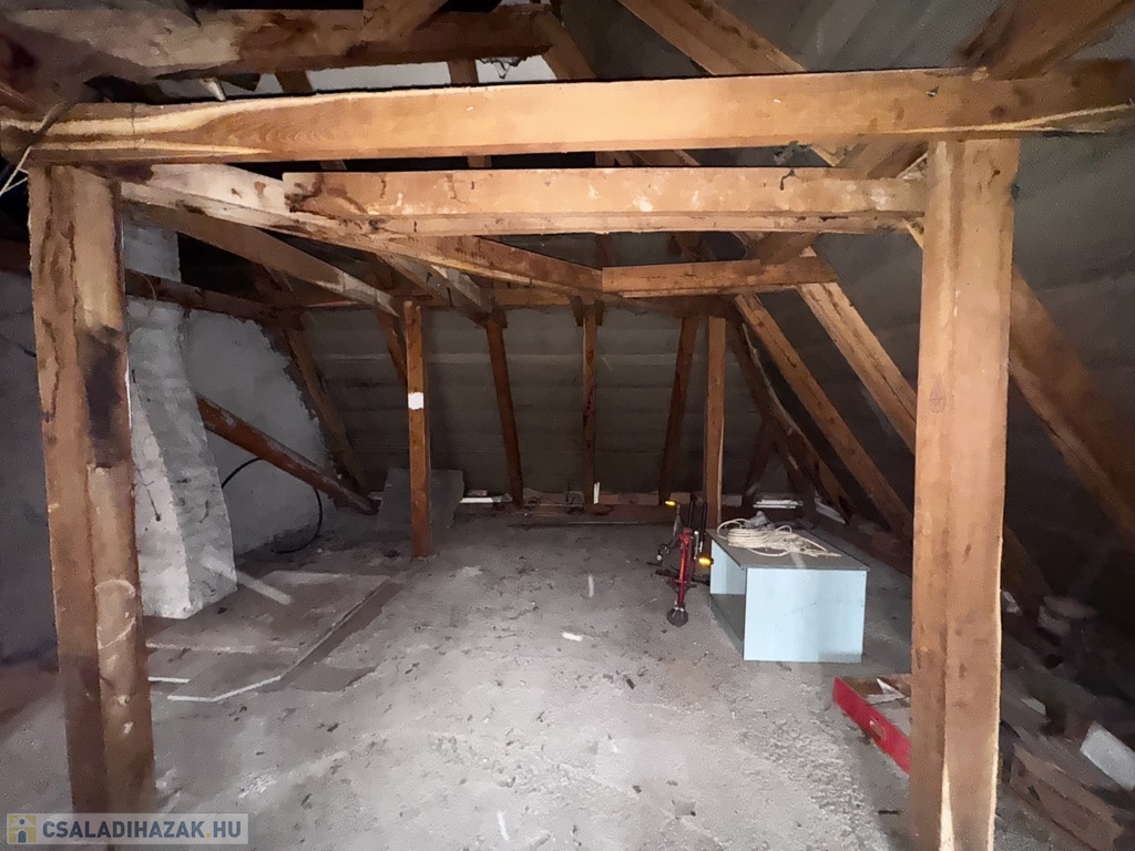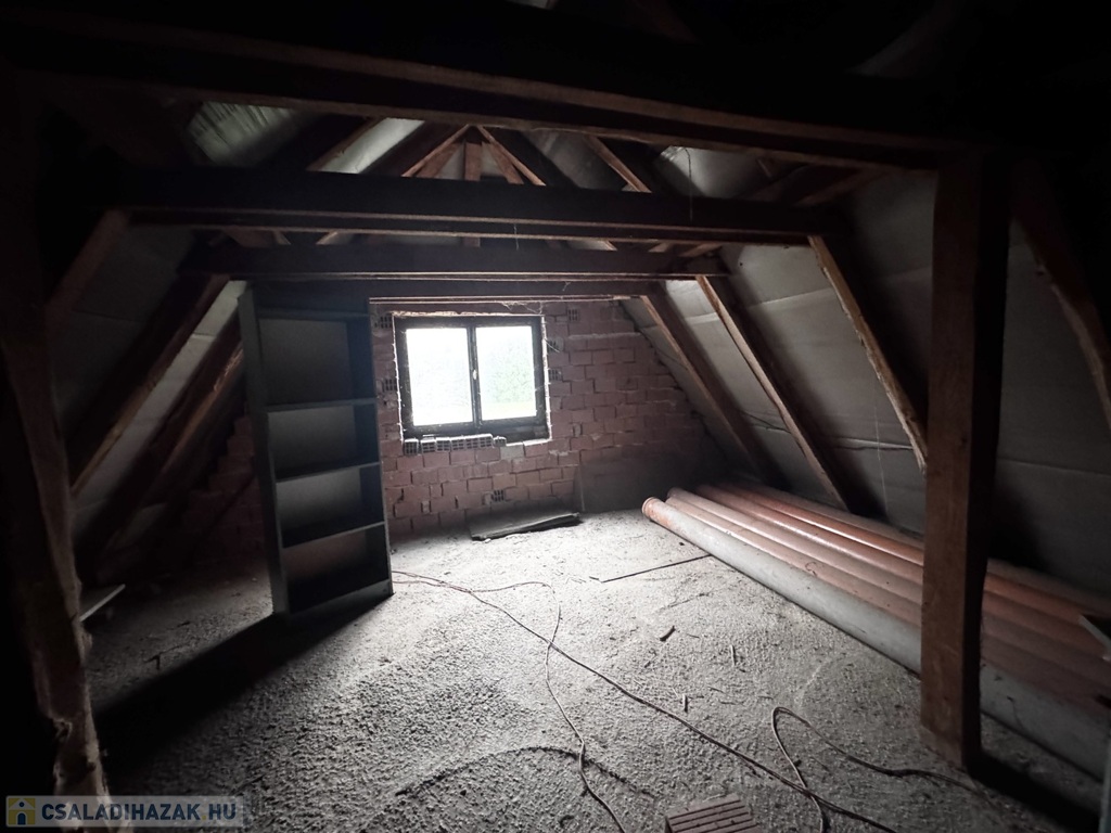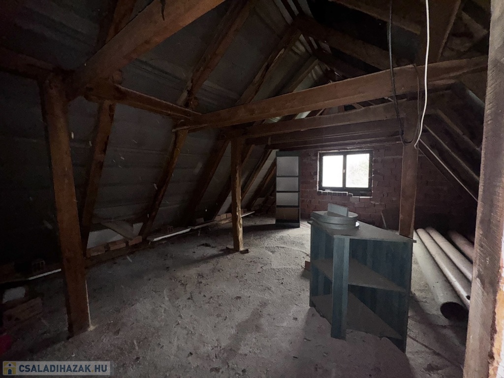 A ház magas tetős, cserépfedésű, az emeleten pedig egy további, mintegy 53 m²-es szerkezetkész tetőtér áll rendelkezésre, amelyben akár további lakóterek is kialakíthatók.