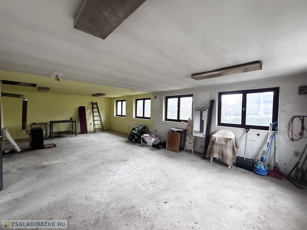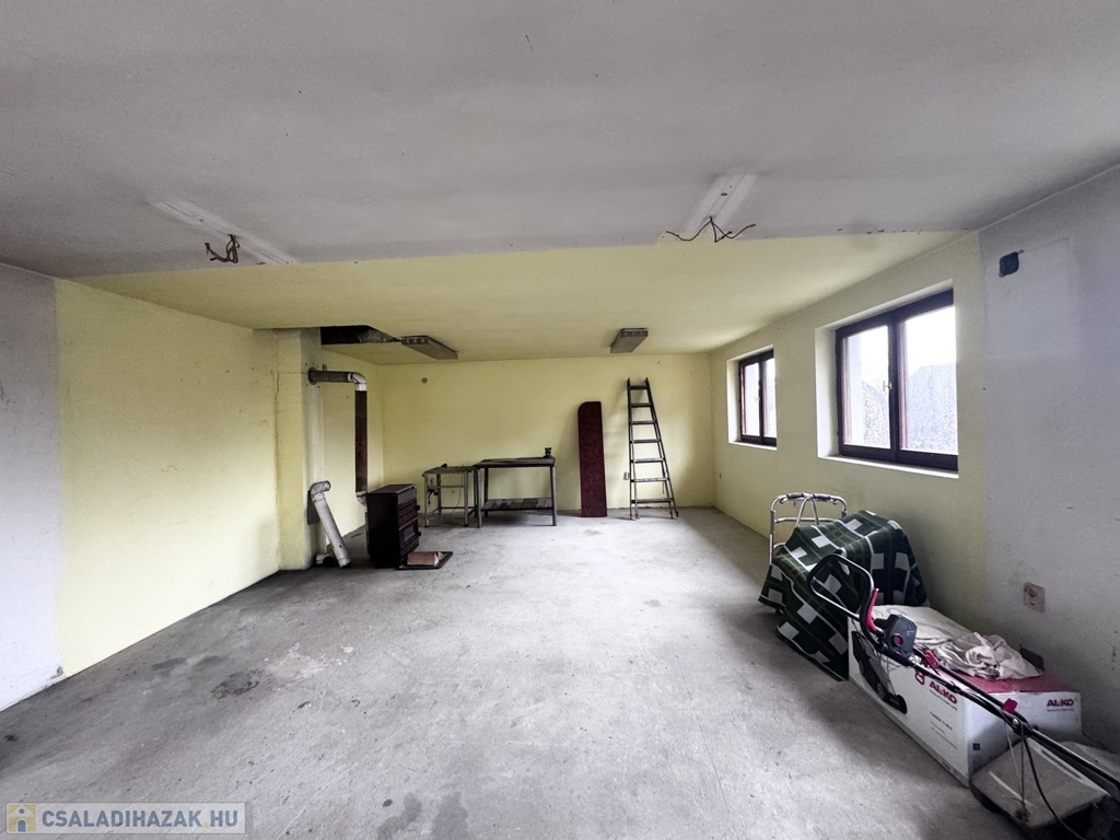 A tetőtér alatt ugyancsak ekkora alapterületű, világos, többablakos helyiség található, amely kiválóan alkalmas lehet nyári összejövetelekre, hobbiszobának vagy akár műhelynek is.