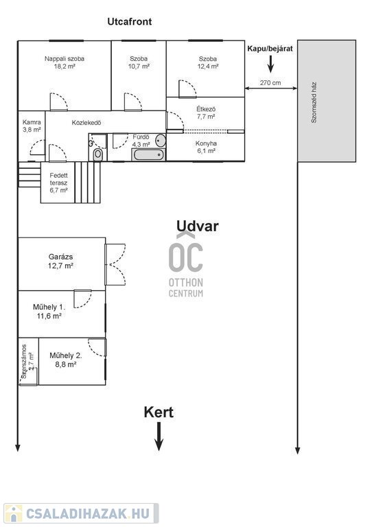 - A tégla építésű, bruttó 85 m2-es (nettó 77 m2) ingatlan 457 m2-es telken helyezkedik