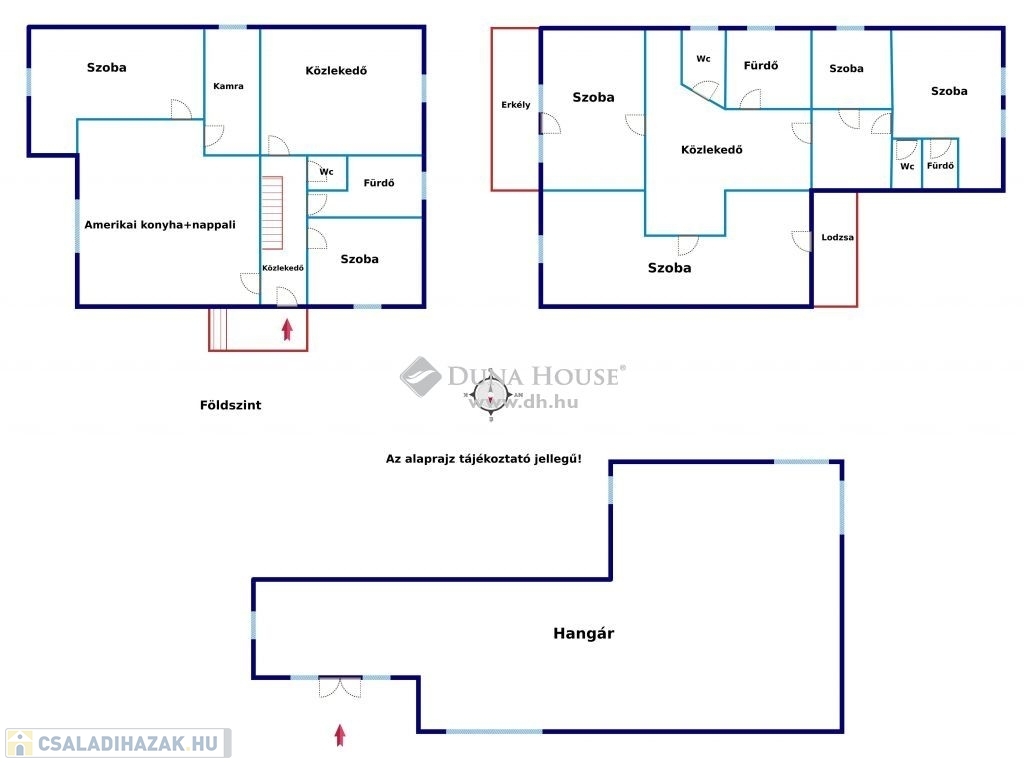 Az ingatlan lakórésze 270 nm, melyhez 205 nm-es beton alappal ellátott könnyű szerkezetes hangár tartozik.