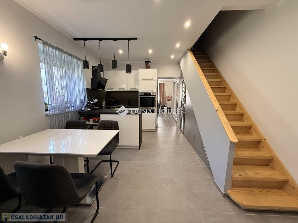 Minőségi otthon Zalaegerszeg Páterdombon felújított sorház saját garázzsal, kerttel, medencével, akár teljes bútorzattal!Eladó egy tehermentes, téglaépítésű, 75 m²-es sorházi ház Zalaegerszeg csendes, zöldövezeti városrészében, a közkedvelt Páterdombon.Az ingatlan kiváló állapotban van, 2020-ban teljeskörű felújításon esett át, így semmilyen felújításra nincs szükség csak be kell költözni! Főbb helyiségek és jellemzők:Nappali + 2 hálószoba praktikus elrendezéssel2 fürdőszoba, ebből az egyik külön WCKülön mosókonyhaGáz cirkó fűtés + 2 darab klímaberendezésA+ energetikai besorolás rendkívül alacsony rezsiköltségSzigetelt homlokzat3 rétegű műanyag nyílászárók, szúnyoghálóval és redőnnyel ellátva Kültéri extrák:31 m²-es saját garázs, felette pakolásra alkalmas padlástér16 m²-es fedett terasz ideális családi reggelikhez vagy esti pihenéshezKis, rendezett saját kert, benne egy 4,5 méter átmérőjű fémpalástos medencével tökéletes a nyári napokra! Lokáció minden kéznél van:A környék csendes, zöldövezeti, mégis kiváló infrastruktúrával rendelkezik. Pár perc sétával elérhető:iskola, óvoda, kisboltok, éttermek, buszmegálló. További előnyök:Teljesen tehermentesAkár teljes bútorzattal is eladóAzonnal költözhető állapotBefektetésnek is ideális (azonnal kiadható)