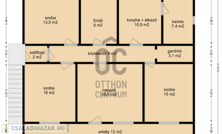 Az ingatlan elrendezése praktikus: 3 tágas hálószoba, nappali, konyha-étkező, fürdőszoba, gardrób és kamra biztosítja a kényelmes mindennapokat.