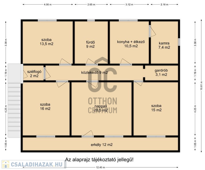Az ingatlan elrendezése praktikus: 3 tágas hálószoba, nappali, konyha-étkező, fürdőszoba, gardrób és kamra biztosítja a kényelmes mindennapokat.