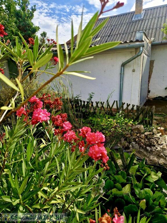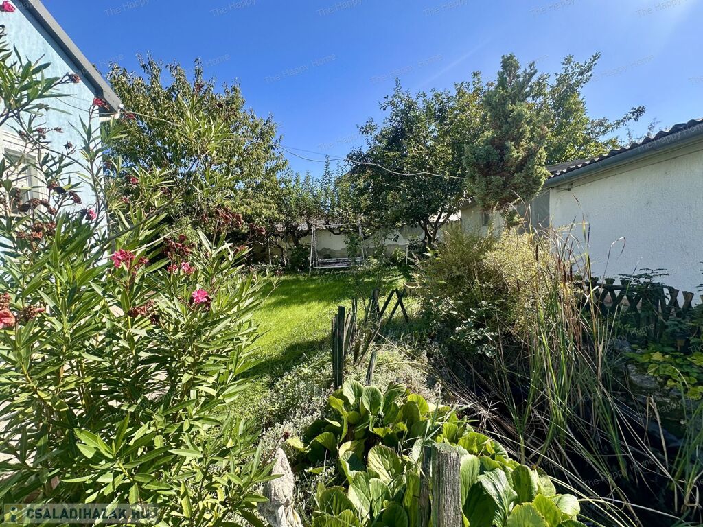 A beton alapra épült tégla falazatú ingatlan egy teljesen körbekerített, 480 m²-es, gondosan ápolt telken helyezkedik el, amelynek ékessége a cseresznyefa, meggyfa, almafák és egy hangulatos kerti tó – ideális hely a pihenéshez, kertészkedéshez vagy családi pillanatokhoz.