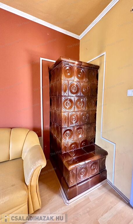 Fűtés: gázkonvektor és egy gyönyörű cserépkályha biztosítja az Otthon melegét