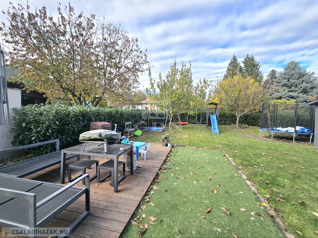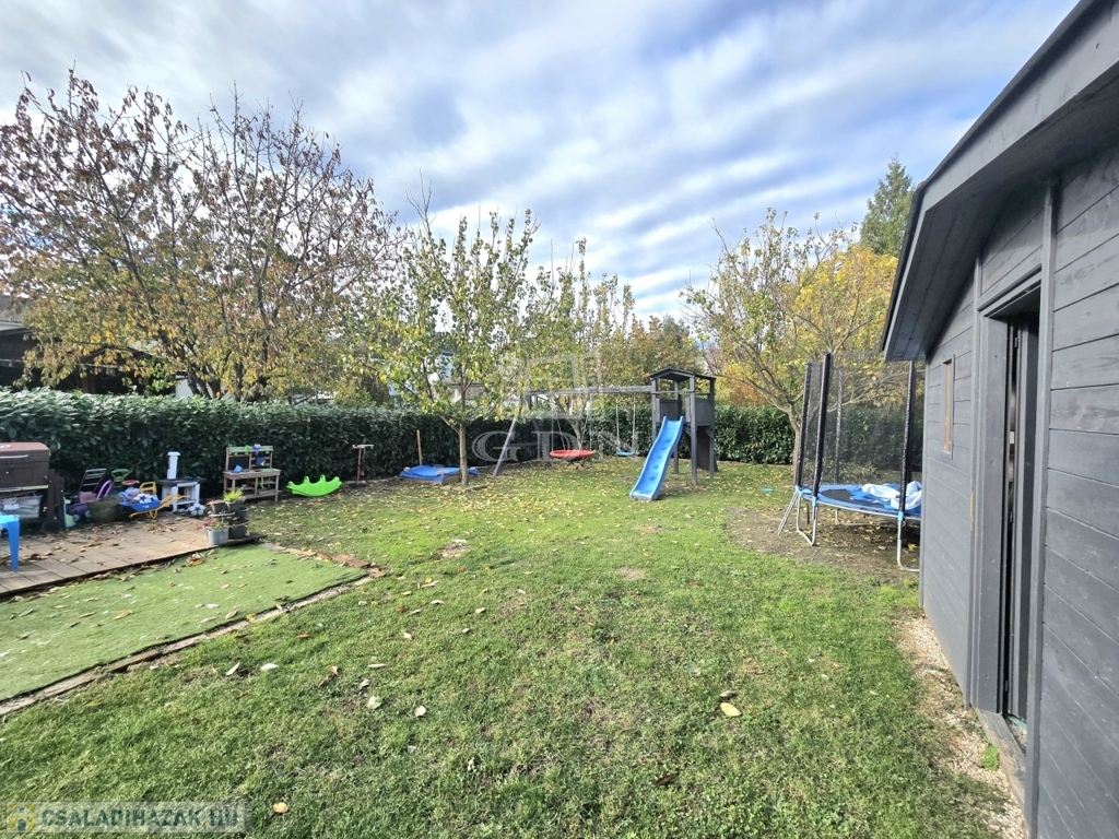 Ez a nettó 90 m²-es, szigetelt családi ház egy 441 m²-es, sík telken helyezkedik el, gondosan karbantartott kerttel, ahol bőven jut hely a pihenésnek és a családi programoknak is.