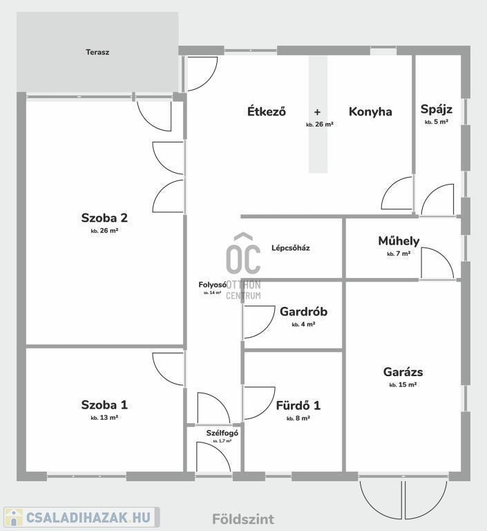 Az ingatlan 194 négyzetméteres alapterülettel rendelkezik, amely öt tágas szobát foglal magában, így elegendő teret biztosít a család számára, vagy akár vendégek fogadására is.
