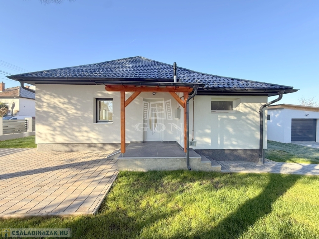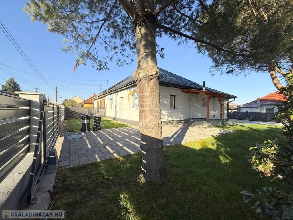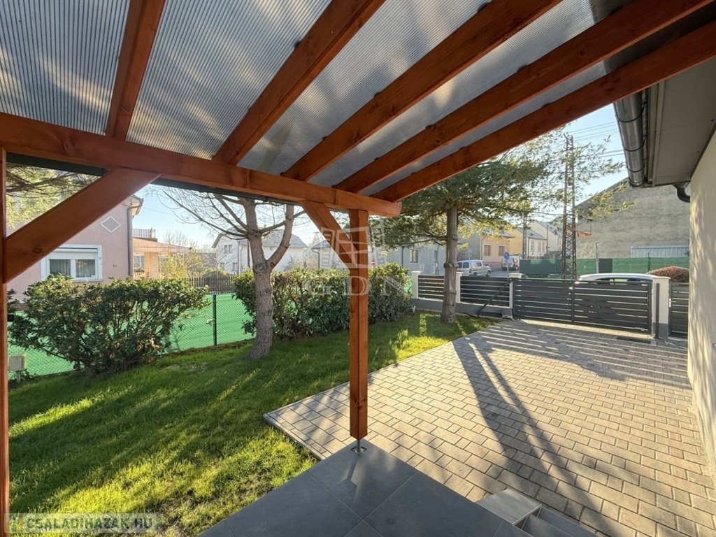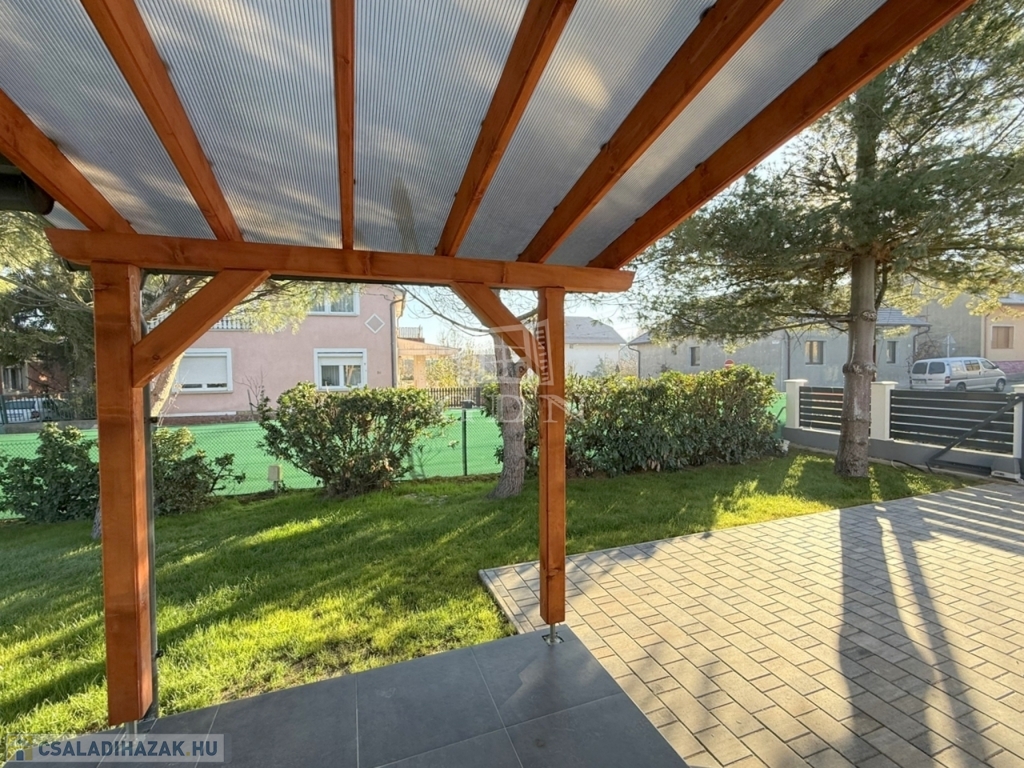 A családi házhoz tartozik egy 24 m2 - es új garázs, egy mellette megépült fedett autóbeállóval.