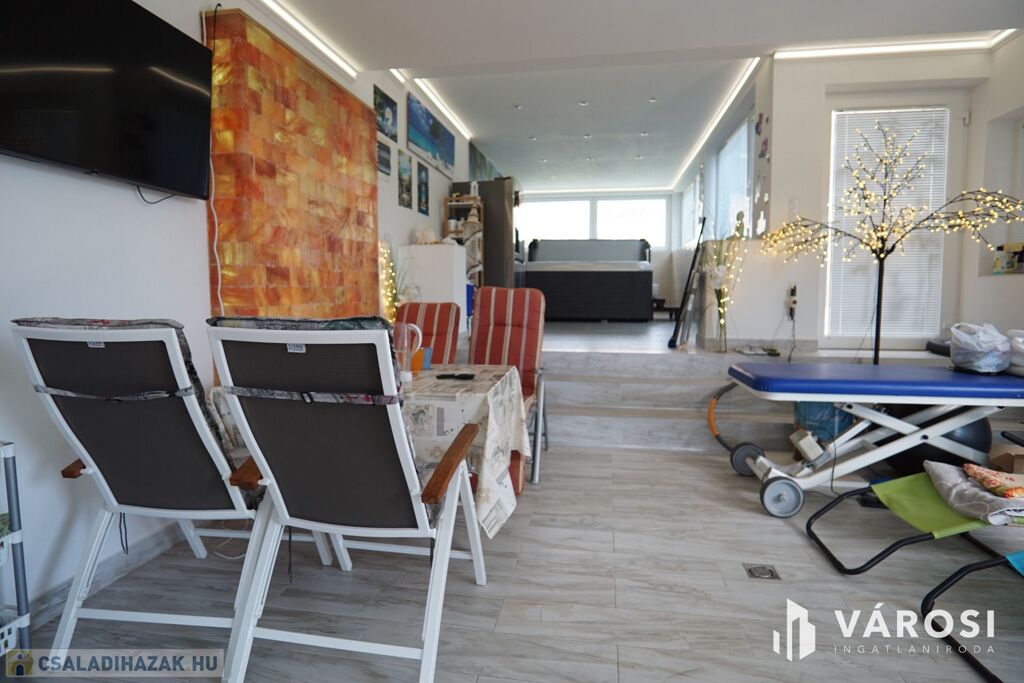Nagy négyzetméterrel rendelkező, több helységből álló épület, hangulatvilágítással, számos wellness lehetőséggel. ( 5 fős Jakuzzi , Infar és Finn szauna, panorámás kilátással, só-fal, 5-6 fős fa tüzelésű Dézsa nyitott teraszon panorámával, konditerem elektromosan elhúzható tetővel, sport pálya)