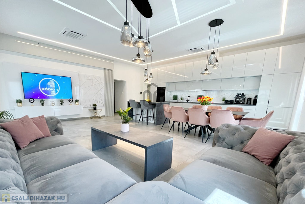A családi ház tervezési, kialakítási munkálatait belső építésszel közösen álmodta meg a tulajdonos, és alakították ki. A felhasznált, beépített anyagok kivétel nélkül prémium minőségűek ( számlával igazoltan ).