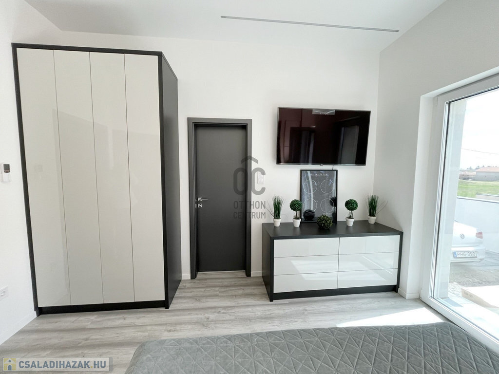 Zalakaros legújabb lakóövezeti részén eladásra kínálunk egy egyedi tervezésű, tehermentes, azonnal költözhető, 2022-2023-ban, saját célra, prémium anyagokból és minőségben építtetett, modern, letisztult stílusú, teljesen berendezett, bútorozott, nulla rezsiköltségű családi házat.