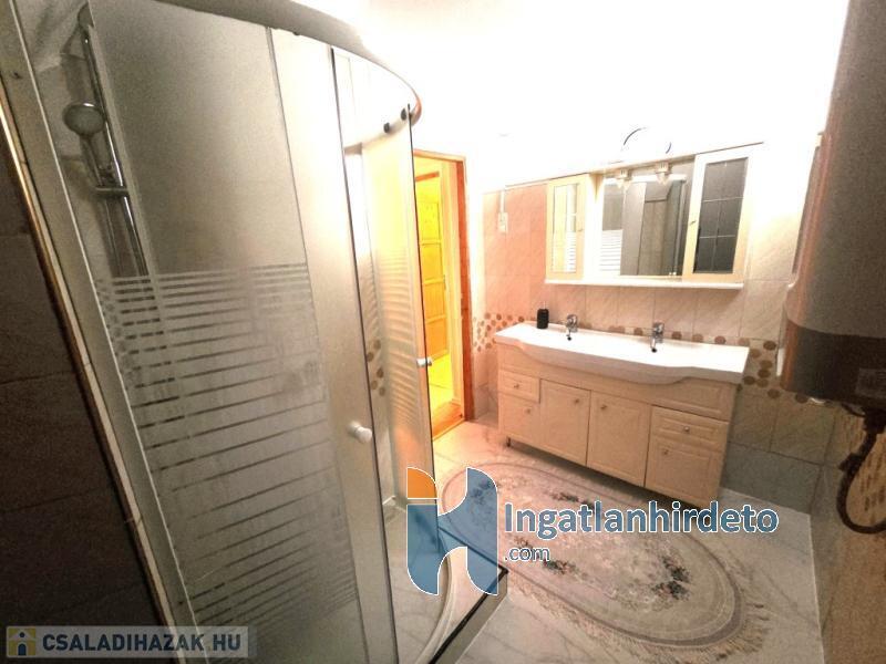 Elhelyezkedése: Zöldövezet Tájolása: Dél-keleti tájolású Állapota: Használt - felújított Komfort besorolása: összkomfortos Építési éve: 1980 Alapterülete: 160 m2 Telekterülete: 645 m2 Szobák száma: 5szoba Felújított: Felújított Felújítás éve: 2022 Felújítás során elvégzett munkák: Festés, Villanyrendszer csere, Csempe csere, Járólap csere, Parketta csere, Fűrdőszobai szaniterek cseréje, Külső hőszigetelés, Új külső vakolat Közművek: Víz, Villany, Csatorna Vízellátás: Vezetékes víz Melegvíz-ellátás: Villanybojler Áramellátás: 230V/380 V Fűtés módja: Fa, Villany Homlokzat állapot: Újszerű Építési mód: Tégla Tető formája: Magas Tető anyaga: Cserép Parkolási lehetőség: Telken Kilátás: Hegyi panoráma Napelem: Van Teljesítmény(kW): 5 kW Jellemzői: Csendes környék, Két bejárat, Udvari terasz, Beépíthető tetőtér, Beépített konyhabútor, Kert, Beépített tetőtér Energetikai besorolás: E Egyéb jellemzők: Erkély, Terasz Tv, Internet: Kábeltévé, Internet Közelben: Autóbuszállomás, Orvosi rendelő, Bolt, Vendéglátó egység Eladásra vonatkozó információk: Az ár tartalmazza a teljes berendezést