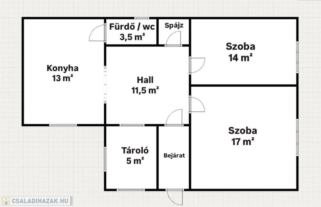 Víz, villany, csatorna bekötve, külön külső mérőórákkal
