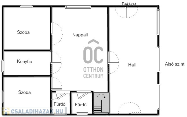 Az ingatlanban 5 szoba, 3 fürdőszoba+Wc, konyha-étkező, tágas világos nappali találhatóak. Az épületben a két szint között belső lépcsőn lehet feljutni.