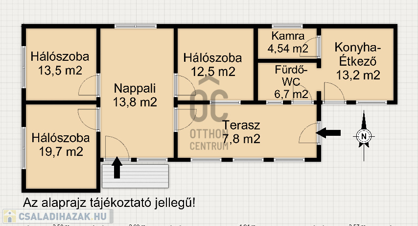 - helyiségek: 3 tágas hálószoba, nappali, fedett veranda, konyha-étkező, kamra, fürdő, külön WC