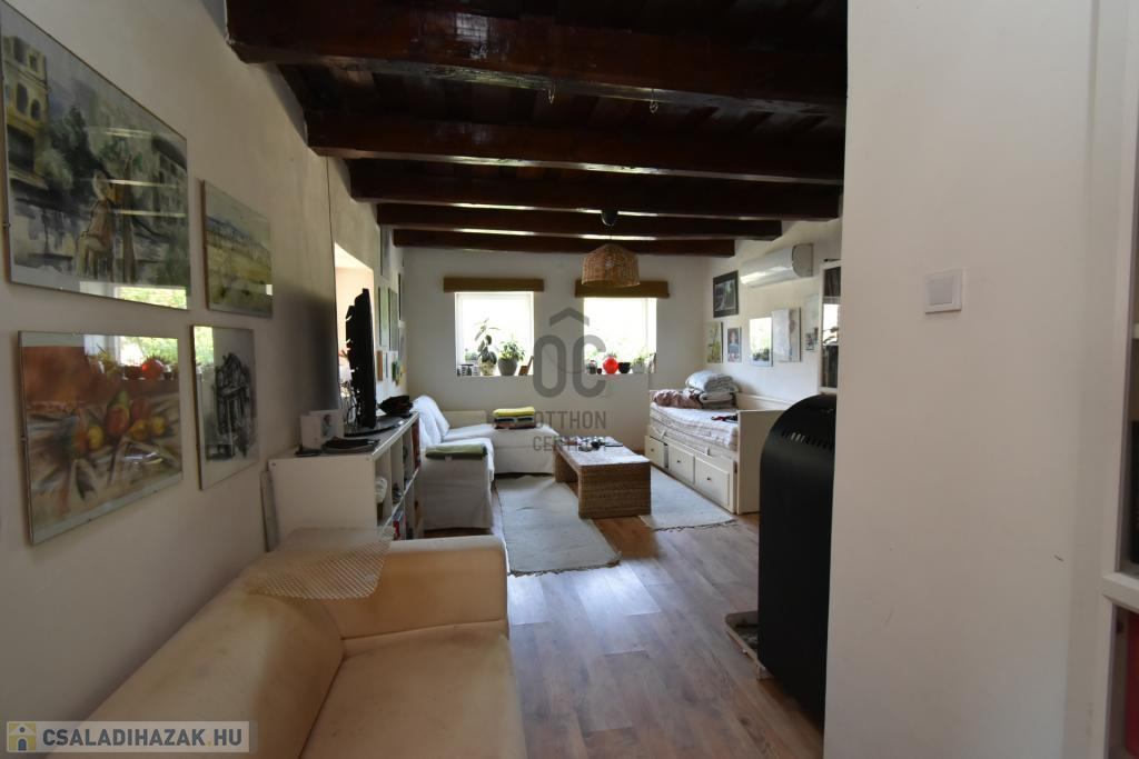 - A felújított parasztház igazi éke, a nappaliban található gerendás mennyezet.