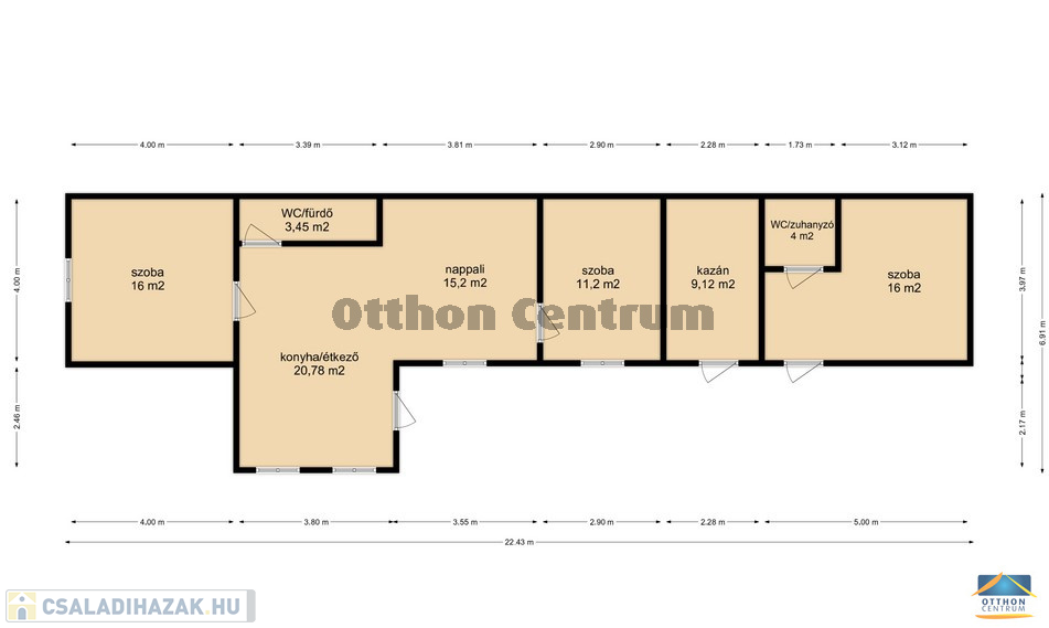 A ház fő része egy amerikai konyhás étkezőből, nappaliból, fürdőszobából és két ideális méretű hálószobából áll, míg az udvar felől nyílik egy másik, önálló szoba, saját fürdőszobával.