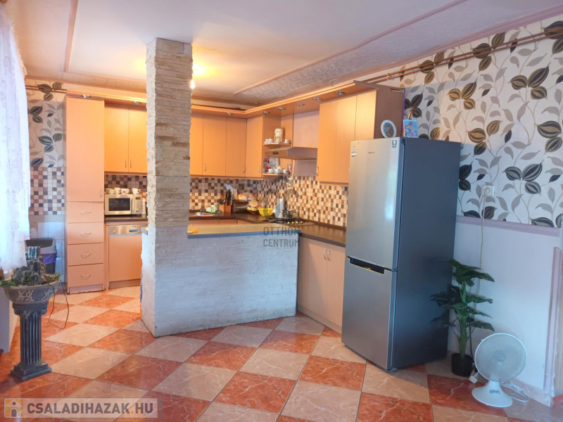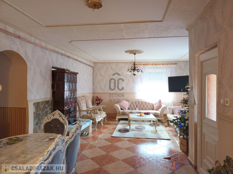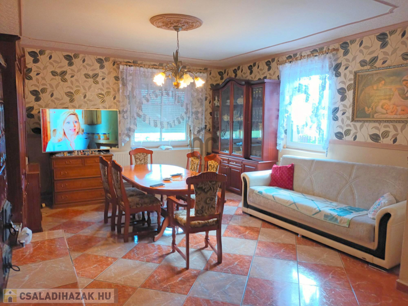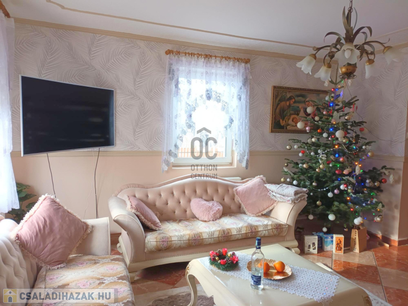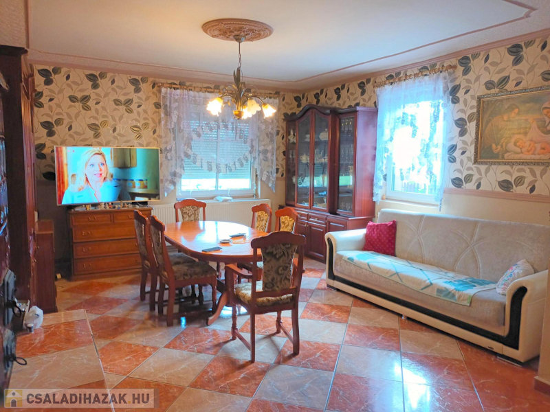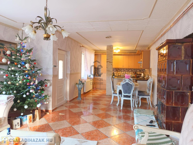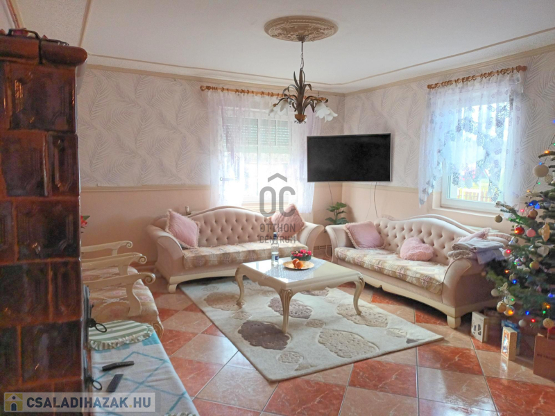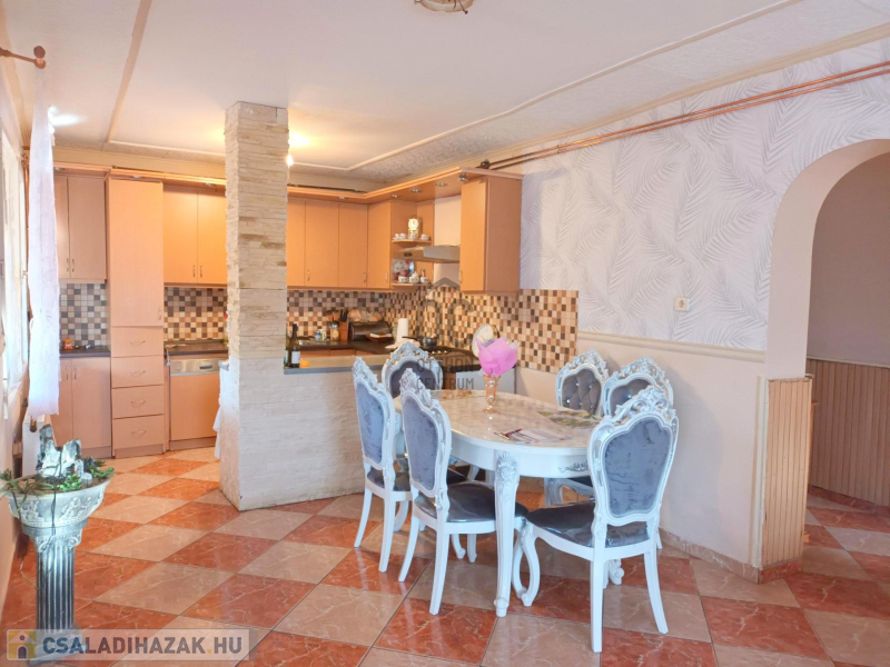 A 145 nm-es épületben 4 szoba, 1 tágas nappali, szintenként fürdőszoba, a földszinten külön Wc, 1 konyha-étkező, 1 közlekedő és 1 lépcsőház található. A nyílászárók nagy része műanyagra lett cserélve, redőnnyel felszereltek. A nappali, konyha-étkező új járólap burkolatot kapott, a földszinten a két szoba és a tetőtérben lévő egyik szoba laminált padlóval lett ellátva. A földszinten lévő fürdőszoba a 2023-as évben lett felújítva.