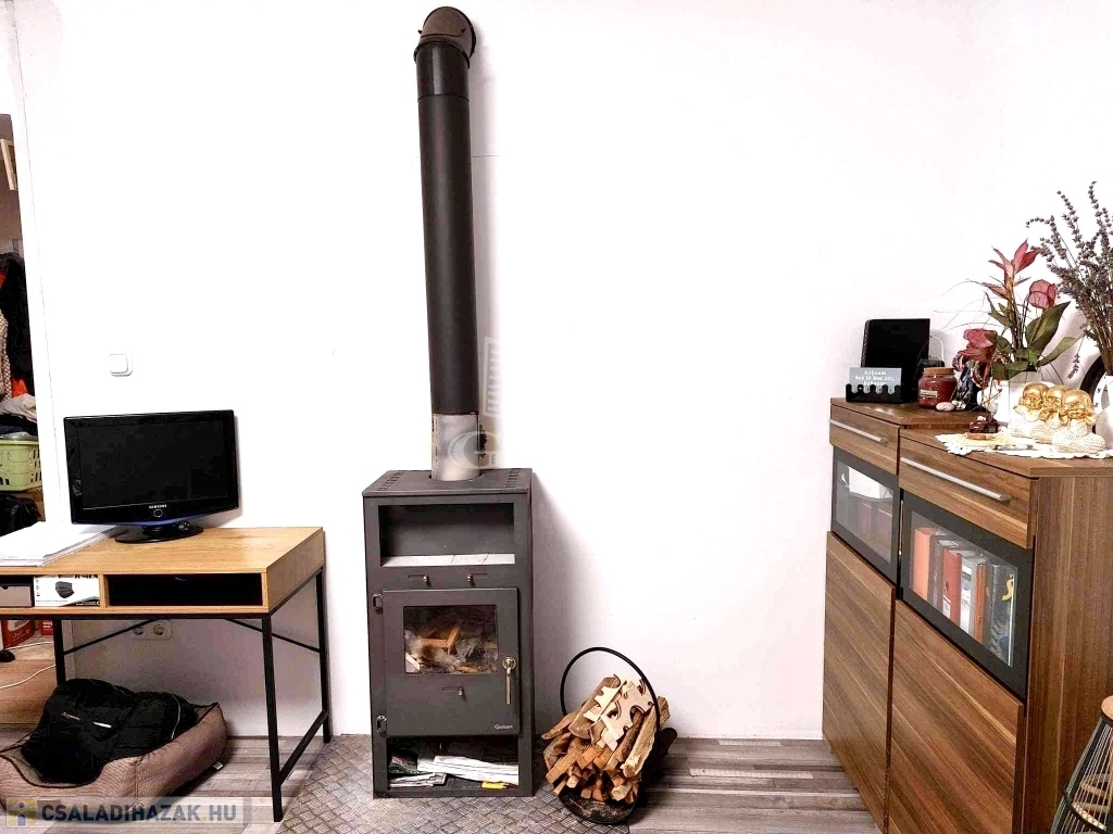 A ház melegéről fa tüzelésű kandalló, illetve elektromos melegítő gondoskodik, a melegvizet villanybojler szolgáltatja. A gáz a házba nincs bekötve, de a telken belül megtalálható a csatlakozás, így igény esetén könnyedén megoldható a rákötés. A többi közmű (villamos áram, víz, csatorna) a házban bekötve. Az épületre napelem panelek is felszerelésre kerültek, így a villamos energia költségek jelentősen csökkenthetők.