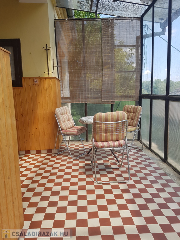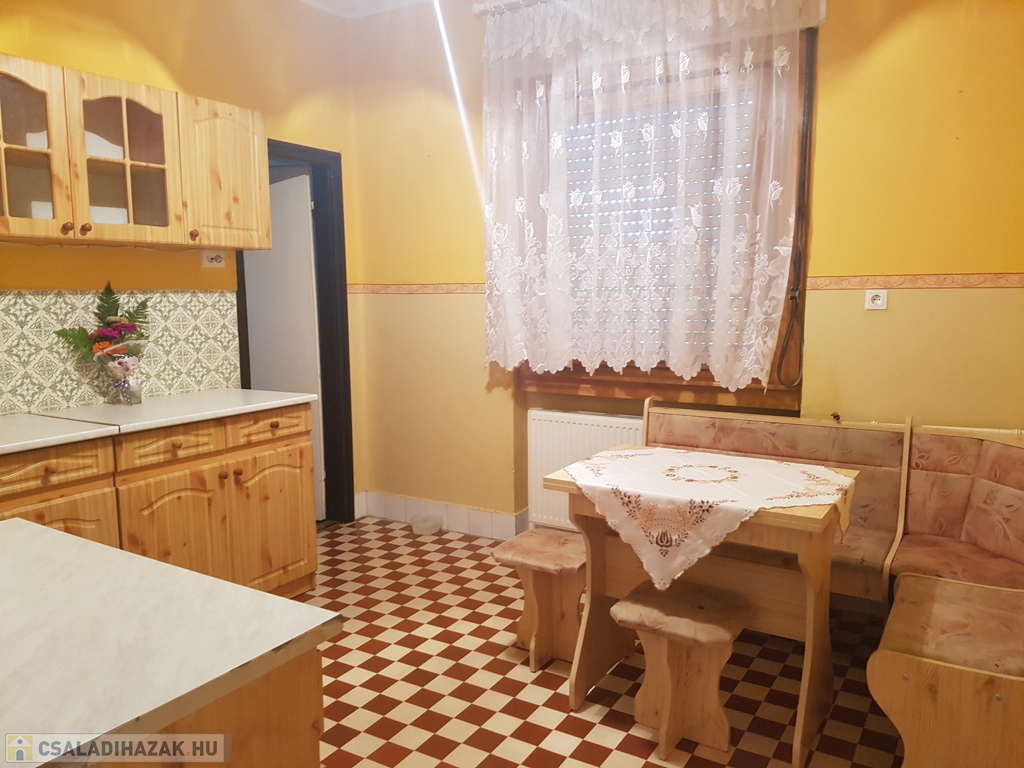 A házban 3 szoba, nagy konyha ,fürdő-WC egyben (zuhanyzó, kád és a gázkazán), meleg víz ellátás villanybojlerből ami kb.5 éves, kamra (ahol a padlásfeljáró is van), előszoba, nagy terasz van kialakítva.