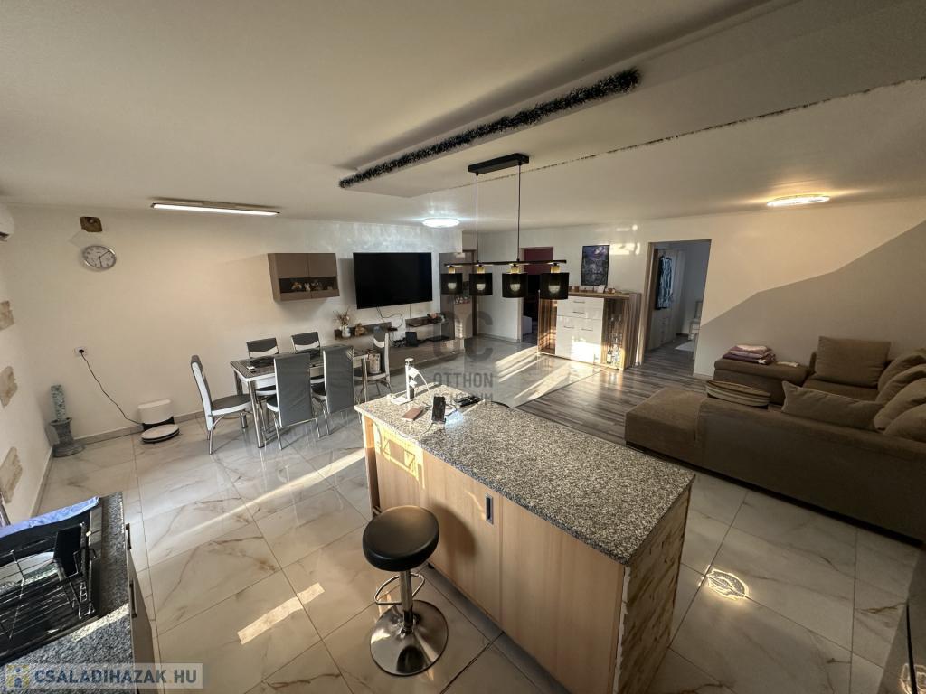 Az 1117 m2-es telken álló, 90 m2-es Kádár-kocka alapjaira épített ház 2022-ben lett befejezve, teljesen újonnan épült.