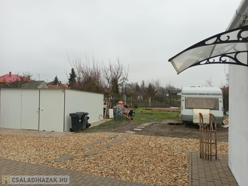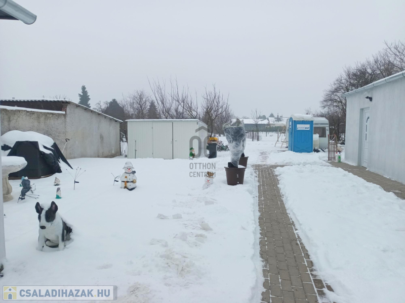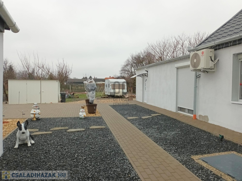 Az udvar egy része térkőburkolatot kapott, találunk még itt egy 20 nm-es garázst (villany itt is kiépítve), a kertben több, termő gyümölcsfát (meggy, szilva, őszibarack, sárgabarack, alma), illetve az öntözéshez/locsoláshoz bővízű ásott kút is fellelhető!