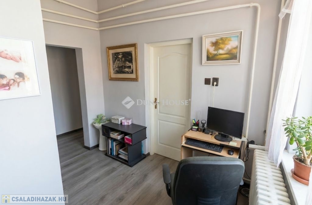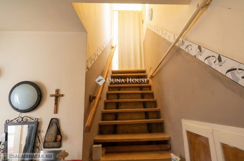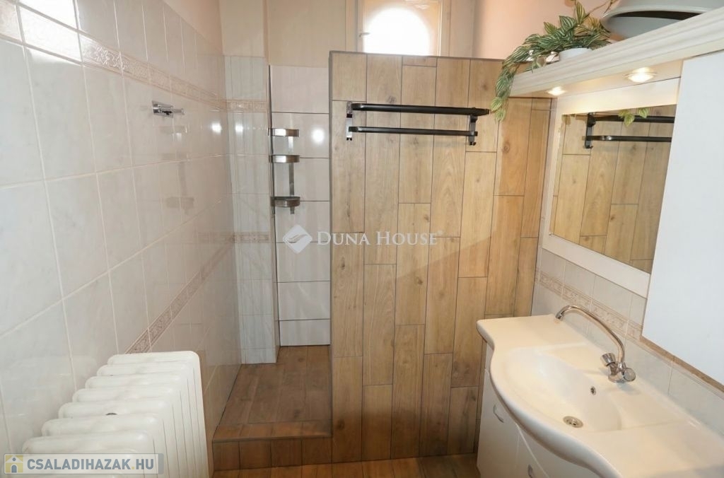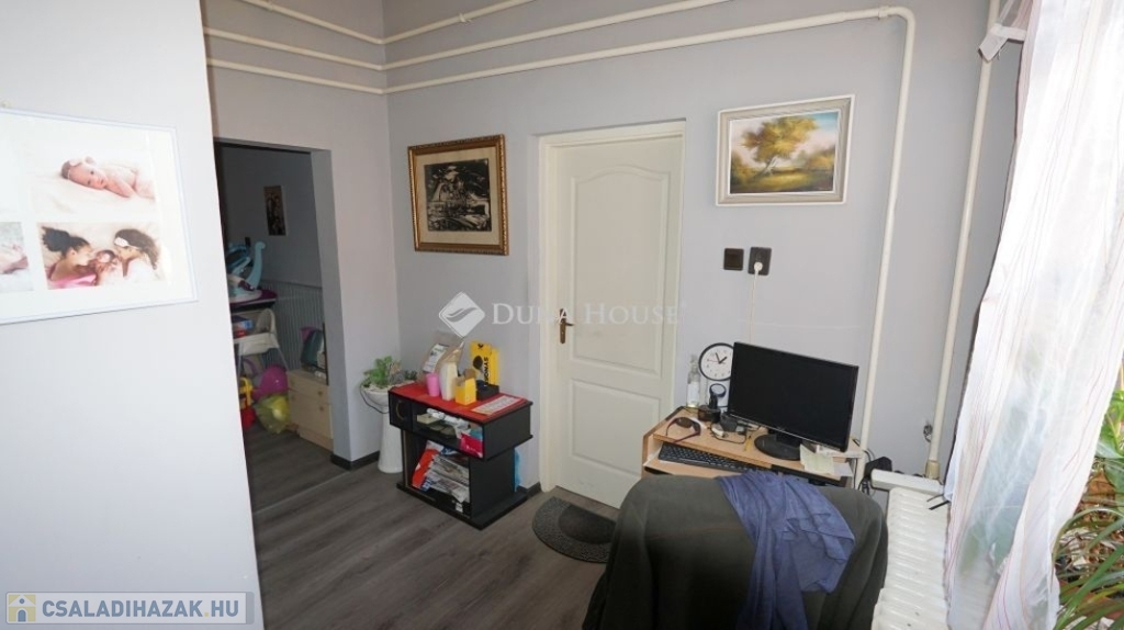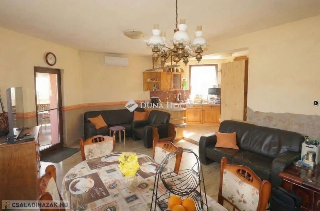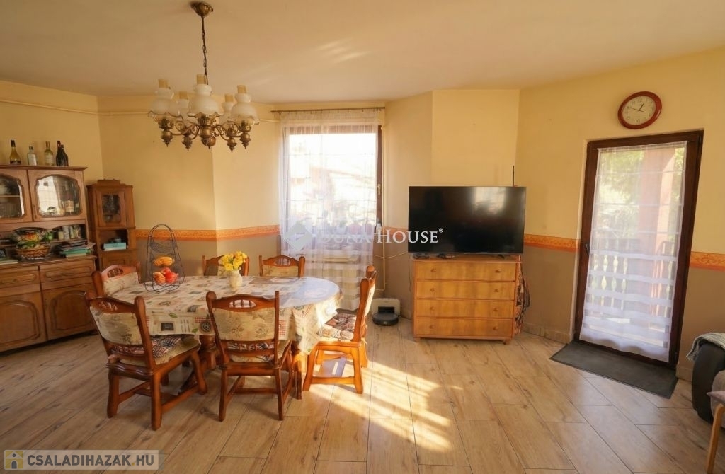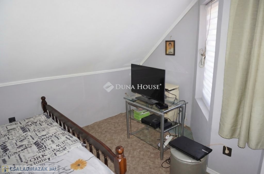 Az ingatlan a jelenlegi formáját 1996-ben nyerte el akkor lett hozzáépítéssel és a tetőtér beépítéssel bővítve az épület, mely egy része alatt pince is van. A ház lakóterébe egy szélfogón keresztül jutunk be, amiből jobbra lévő előszobából nyílik a 3 szoba, zuhanyzós fürdő és a külön wc. A bejárattól balra egy közel 40 nm-es amerikai konyhás nappaliba jutunk, ami tágas teret biztosít a család számára a közös időtöltésre, jó idő esetén pedig a nappaliból nyíló fedett terasz is rendelkezésre áll. A tetőtérben egy erkélyes szoba, és fürdőszoba található. A ház sokféle lehetőséget rejt magában, amit a leendő tulajdonos igényei szerint alakíthat, és akár több generáció számára ideális otthont biztosít. Igény esetén a földszinten még egy különbejáratú szoba kialakítható a 22,5 m²-es szoba kettéosztásával.
