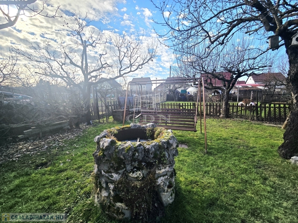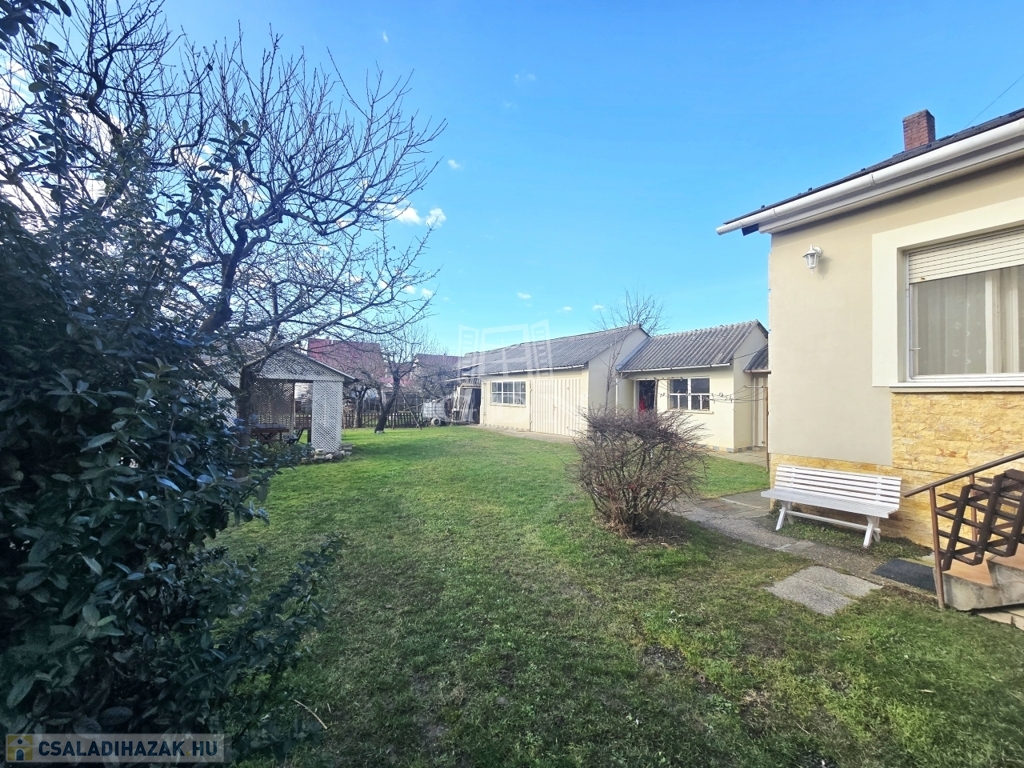 A kertben számos díszbokor és termő gyümölcsfa található, többek között körte, alma, dió, a kerti kiülő pedig lehetővé teszi a kellemes együttlétet a család számára. A gondozott, körbekerített udvar biztonságos teret biztosít gyermekeknek és háziállatoknak egyaránt.