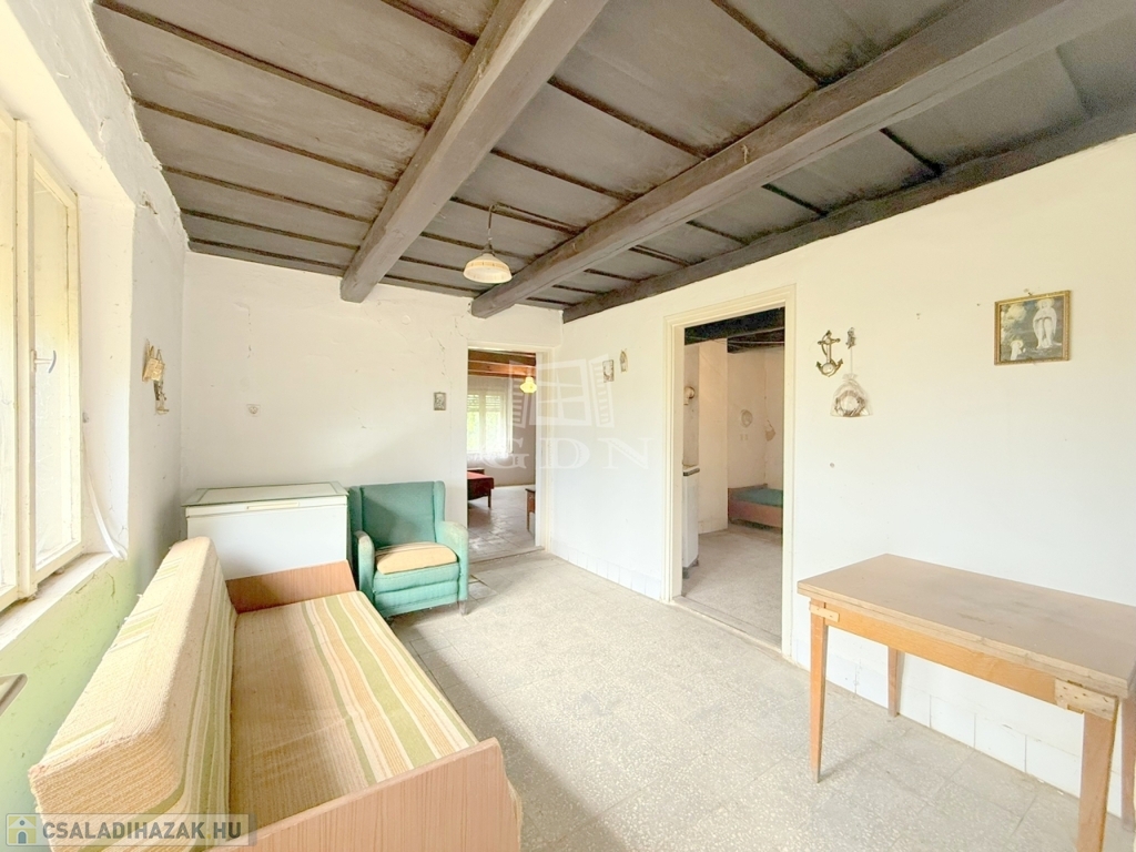 Zalatárnokon vált eladóvá ez a főútról még csak nem is látható 95 m2 - es vegyes falazatú, eredeti állapotú családi ház egy csendes, fás, 2024 m2 - es területen.