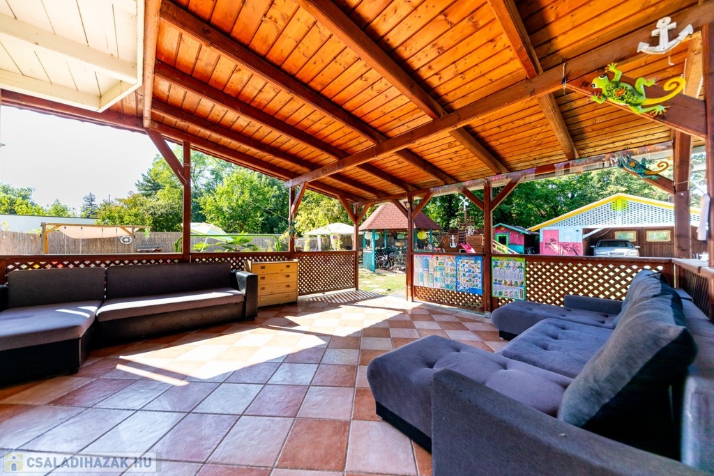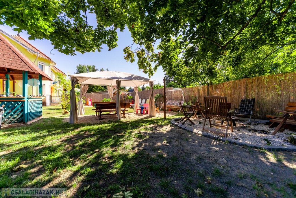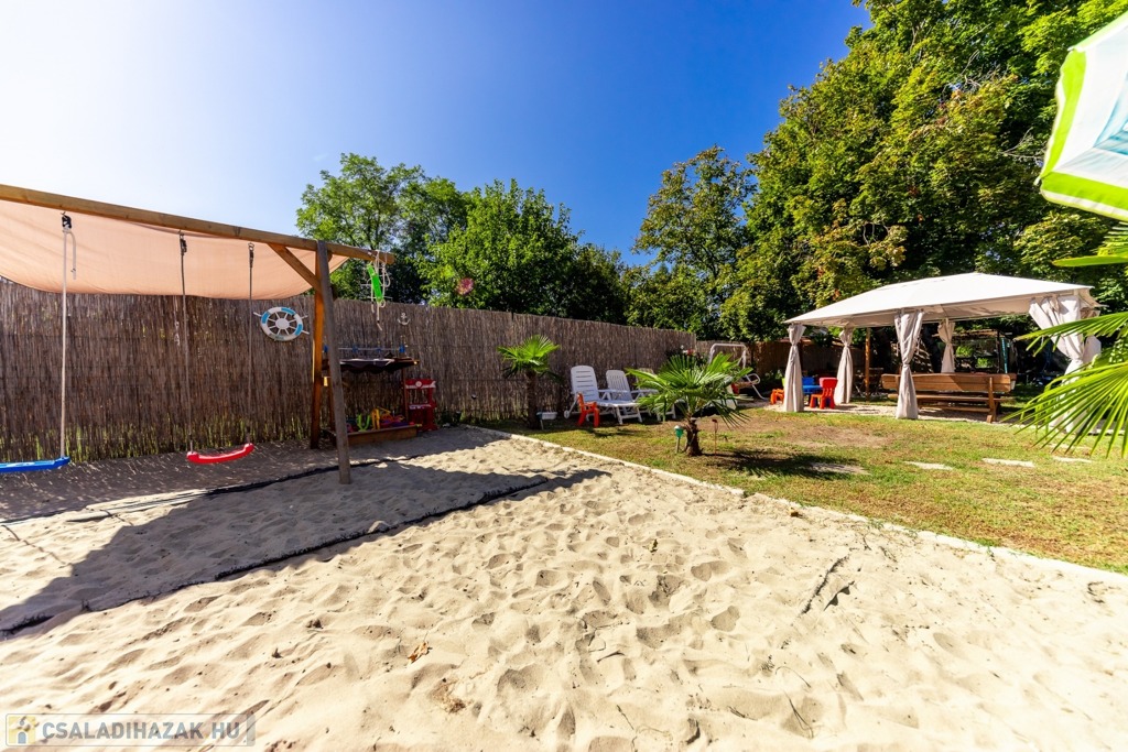 Zamárdi üdülőtelepén, 5 perc sétára a strandtól, a Vécsey Károly utcában eladó egy 2003-ban épült, nettó 200 m2-es, lakóházként használt 3 szintes családi ház. Az összközműves, üdülőövezeti telek területe 1170 m2, melynek beépíthetősége 20 %, ahol fedett kocsibeálló, játszótér, kerti szerszámos, plusz egy 35 m2-es nyaralóépület is helyet kapott.