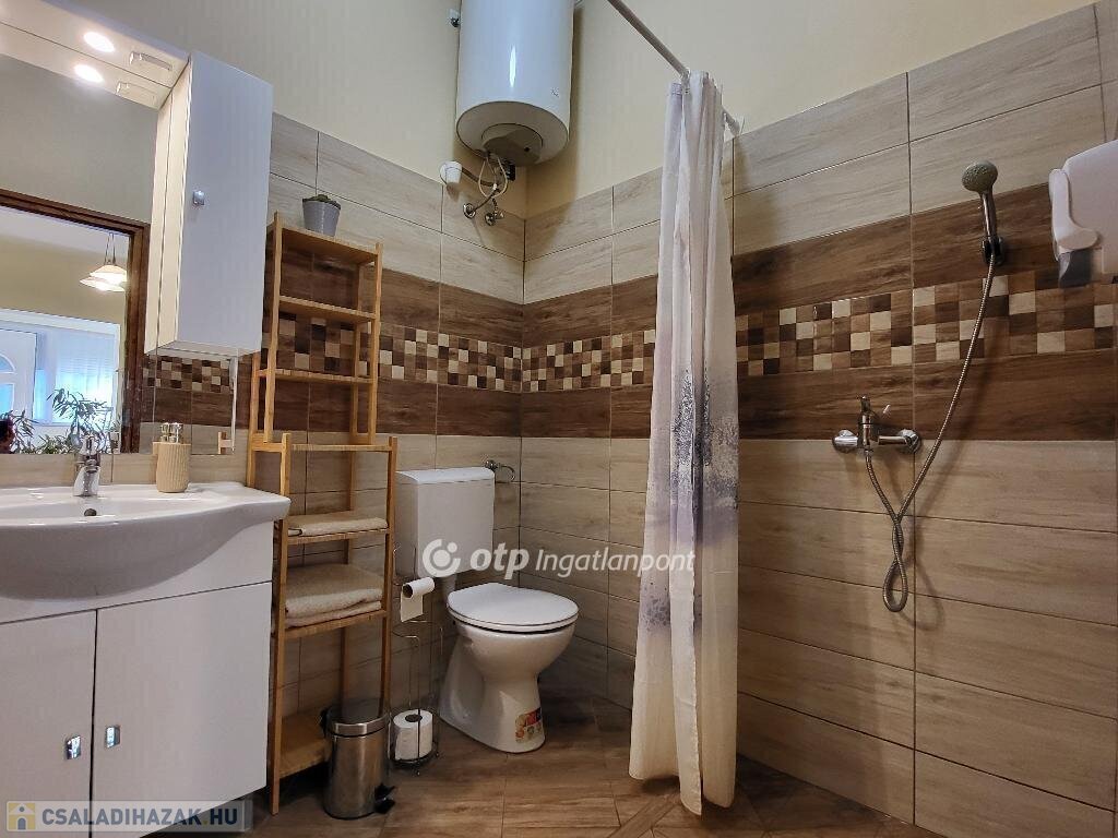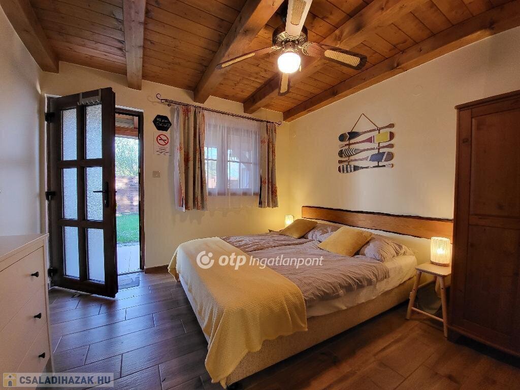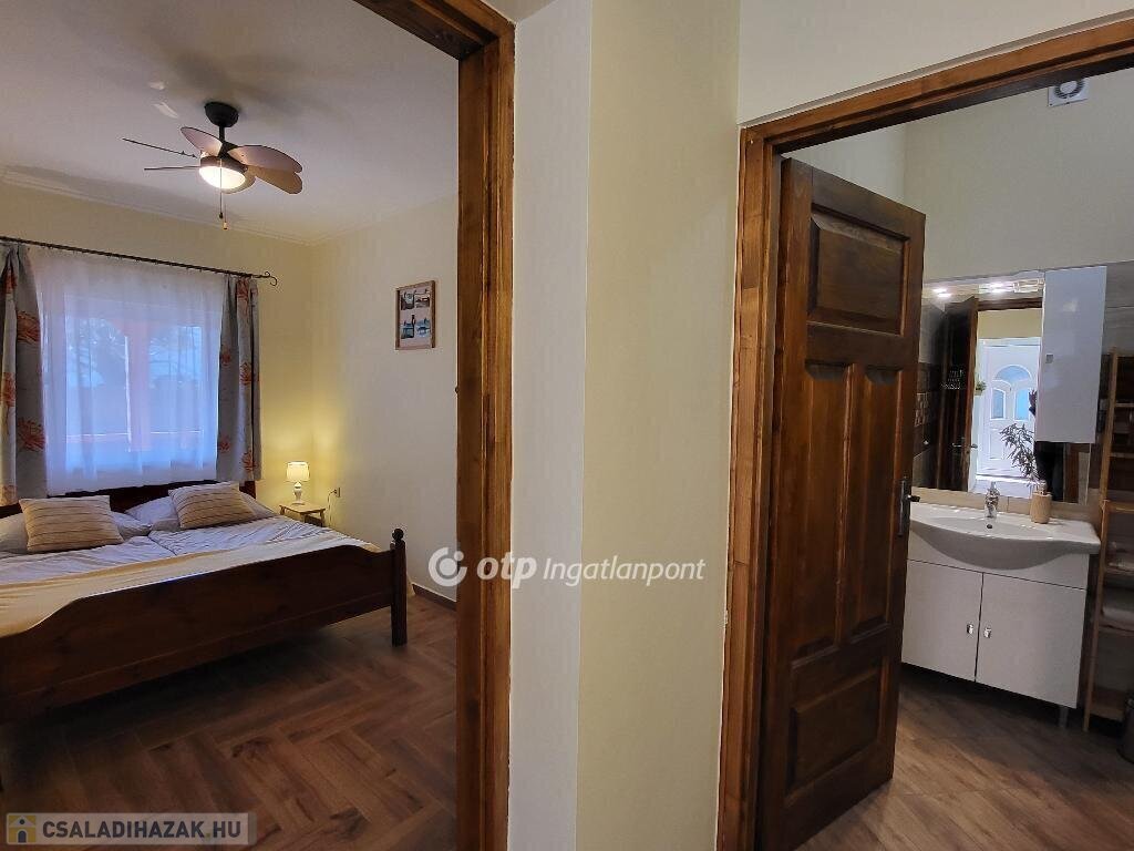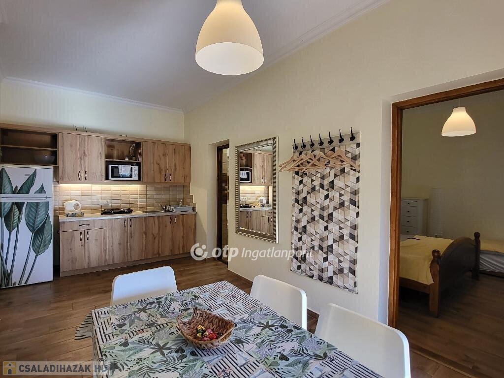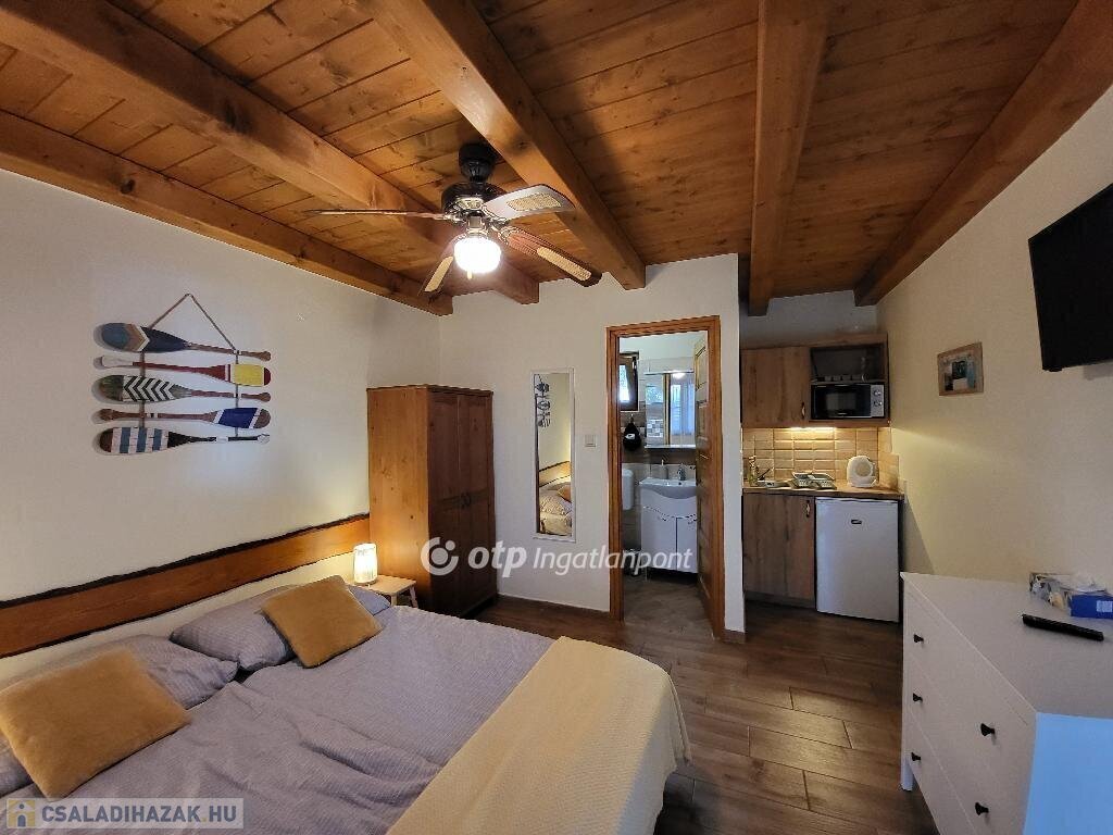 Balaton déli part, Zamárdi, vízpart közeli 193 m2 családi ház és apartman, 530 m2 telek eladó. Az ingatlan a közkedvelt település üdülőövezetében helyezkedik el, 300 méterre, gyalog 4 percre a Balaton-parttól, szabadstrandtól. Az évek óta jól működő apartmanház működtetése már erre a szezonra is átvehető, de kisebb átalakítással tökéletes családi házzá alakítható állandó lakhatásra vagy nyaralásra. Jelenlegi állapotában az egy, illetve kétszobás apartmanok összesen 20 fő befogadására alkalmasak. Az összesen 169 m2 lakóteret 49 m2 terasz és erkély növeli. Az áramellátást napelem biztosítja, így a havi rezsiköltség csak 8 ezer Ft. Az egyes lakrészek különböző komfortfokozattal rendelkeznek, van köztük gázkonvektorral fűtött és klimatizált is. A zárt, térköves udvaron 5 autó elhelyezésére van lehetőség, a füves udvarrész pedig tökéletes hely a pihenésre, családi és baráti összejövetelekre, a gyerekeknek játszótérre. Az ingatlan azonnal használatba vehető, nagycsaládoknak, több generációs családoknak, baráti társaságoknak, vagy befektetési céllal részben vagy egészben kiadásra, nyaraltatásra, üzleti vállalkozásra is kiválóan alkalmas. A szabadstrand mellett kikötő, éttermek, bolt, fagyizó, vasútállomás párszáz méteren belül elérhető, állandó lakhatáshoz pedig óvoda és iskola is biztosított. Ritka, egyedi lehetőség sokféle elképzelés, terv megvalósítására. Bővebb információért keressen telefonon! M326765
