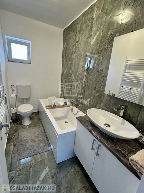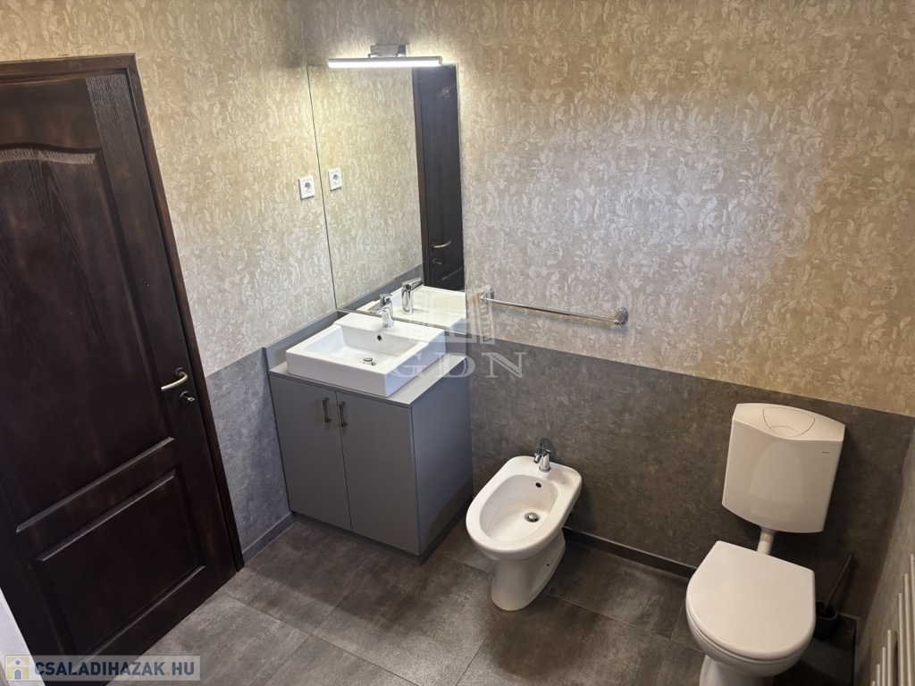 anyagokkal burkolt két fürdőszoba (egy kád-wc és egy zuhany-wc), valamint három hálószoba