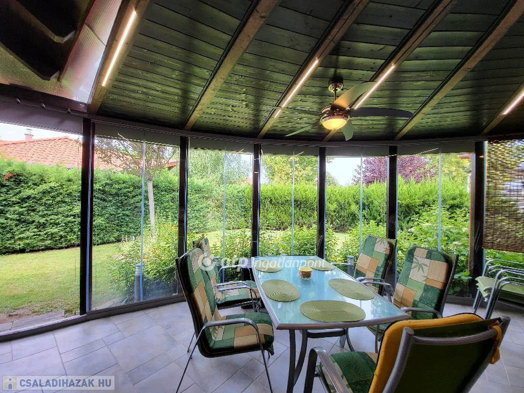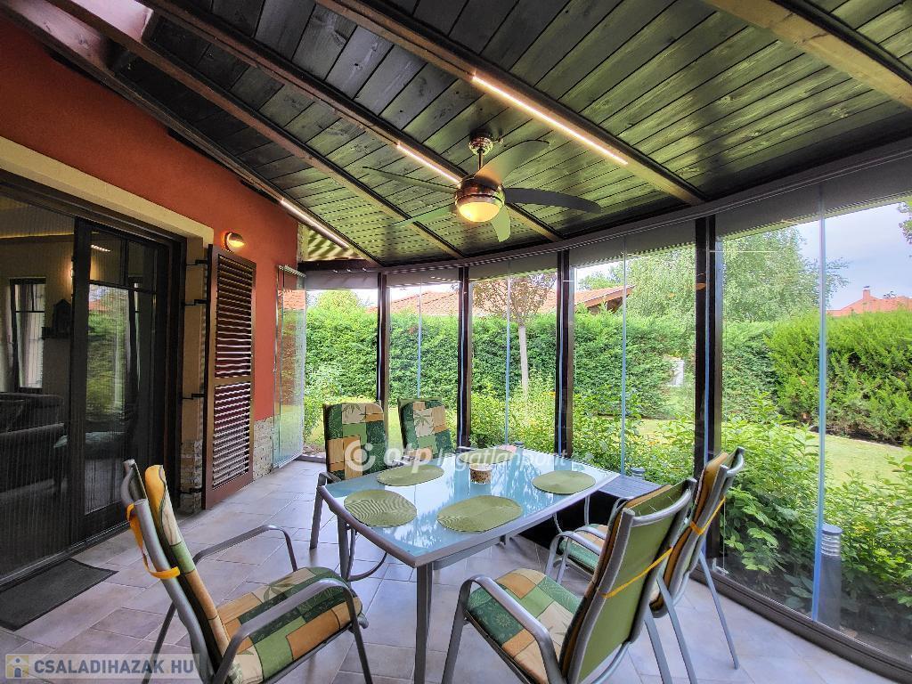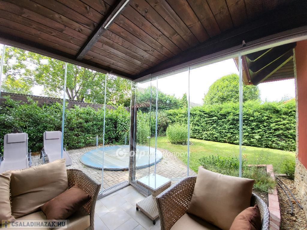 Balaton déli part, Zamárdi, 188 m2 családi ház, 578 m2 telek eladó. A két szintes ingatlan a település üdülőövezetében, csendes, nyugodt, átmenő forgalomtól mentes környezetben helyezkedik el, 300 méterre a kiépített szabadstrandtól. A 135 m2-es ház lakótereit hangulatos, fedett, szakaszosan vagy akár teljes egészében nyitható, beüvegezett teraszok, fedett, nyitott terasz és erkély egészítik ki összesen 75 m2 területen. A hasznos alapterületet tovább növeli egy 38 m2-es, két állásos, fedett gépkocsibeálló. A jól megtervezett, praktikus kialakítású ingatlan fűtését internetről is irányítható gázkazán biztosítja padlófűtéssel és radiátor hőleadókkal. A minden évszakban megfelelő hőmérsékletet és kellemes klímát 44 cm-es hőszigetelt falak és további fali-, illetve tetőtéri szigetelés, valamint 3 rétegű, fa nyílászárók garantálják. Az ingatlan értékét növeli két kerti tároló, valamint további gépkocsi beállók, hajóállvány és kerti medence. A mediterrán stílusú ház udvara is gondosan tervezett, harmonikus. A lakóház kiválóan alkalmas nagyobb családok, akár két generáció együttélésére, de tökéletes választás lehet nyaralásra, valamint befektetési céllal részben vagy egészben kiadásra is. Az ár tartalmazza a teljes berendezést. Lokáció tekintetében egyedülálló, ritka lehetőség. Kiváló minőség számos egyedi részlettel, extrákkal: kamerák, riasztó, elektromos, illetve időjárásnak megfelelően önműködő redőnyök, LED világítás, teraszon előkészített nyári konyha, kandallónak előkészített kémény, automata öntözőrendszer stb.! Bővebb információért keressen telefonon!