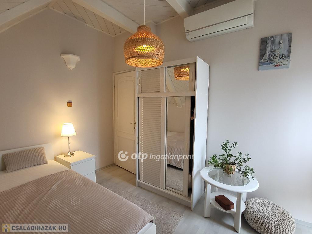 Balaton déli parton, Zamárdiban, 210 m2-es családi ház, 701 m2-es telken eladó. Az ingatlan a település üdülőövezetében, csendes, nyugodt környezetben helyezkedik el, gyalog 2 percre a Balaton-parttól, a kiépített szabadstrandtól. A két szintes, 151 m2-es házban a hatalmas nappalin kívül 4 hálószoba került kialakításra. Az átgondolt, jó elosztású lakótérben 3 fürdőszoba áll rendelkezésre, így ideális lehetőség akár többgenerációs családoknak is. A fűtést gáz cirko kazán biztosítja radiátor hőleadókkal, amit a földszinten padlófűtés és egy kandalló egészít ki, továbbá beépítésre került egy 5 egységes, inverteres hűtő-fűtő klíma berendezés is. Az ingatlan értékét növeli a földszinten külön bejárattal kialakításra került önálló, 21 m2-es apartman, 50 m2-es terasz, egy fedett, fűthető medence gyerekmedencével, 13 m2-es nyári konyha, téli kert, fedett pavilon kültéri kemencével, épített bográcsozóhely, műfüves kert, 4 autó számára térkövezett gépkocsi beálló. Az ingatlan jelentős része 2 éve felújításra került. Az ingatlan kiváló lehetőség nagycsaládoknak, több generációs családoknak állandó lakhatásra vagy nyaralásra, de baráti társaságoknak, vagy befektetési céllal részben vagy egészben kiadásra, nyaraltatásra, üzleti vállalkozásra is tökéletes megoldás. Kiváló minőség, egyedülálló lehetőség extrákkal! A nyári szezonban bérelhető is! Bővebb információért keressen telefonon!