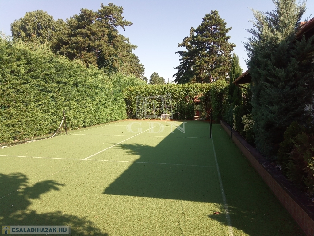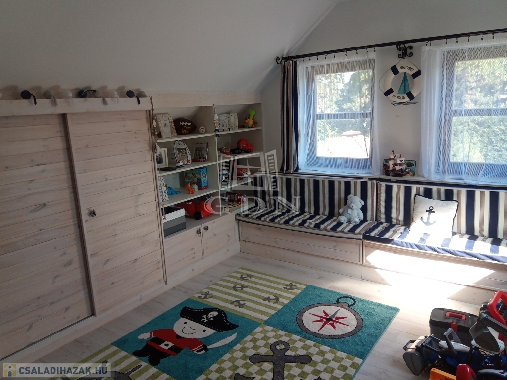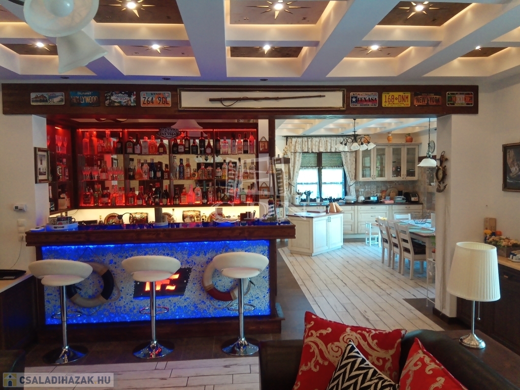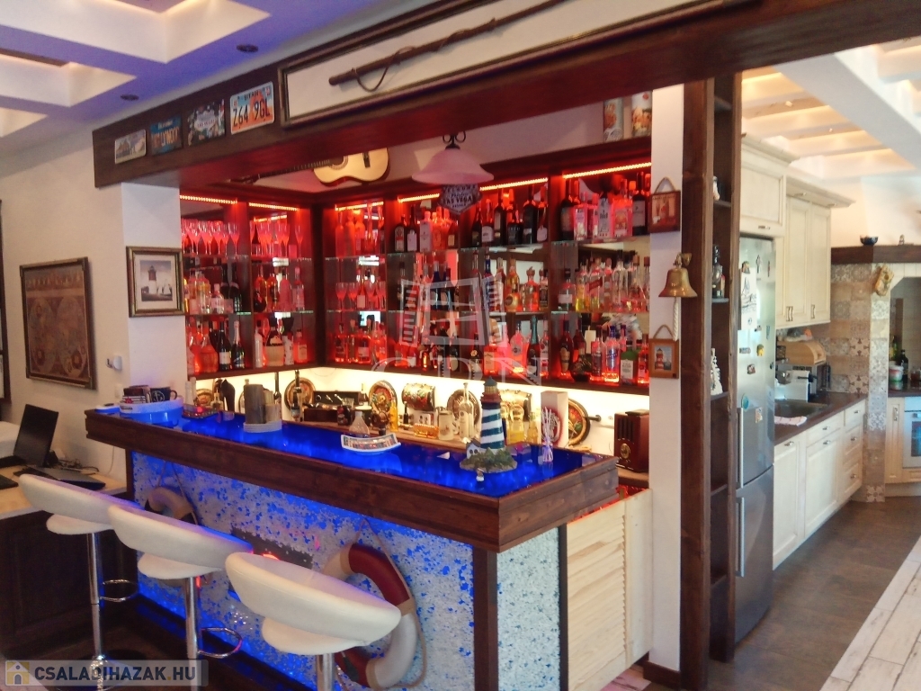 Zamárdi keresett részén, a víztől ötszáz méterre, kényelmesen megközelíthető helyen eladó ez a luxus, számos célra hasznosítható, jelenleg LAKÓHÁZ minősítésű ingatlan. A ház 2017-ben épült minőségi anyagok felhasználásával. Egy gyönyörű parkosított kert öleli, amelyben kerti beálló, pihenő, fedett grillező, egy hatalmas műfüves sportpálya, kis játszótér és egy úszómedence is található. Itt kapott még helyet egy 24 nm területű kerti tároló is, amely akár plusz nyaralóként is funkcionálhat. A ház vízellátását a vezetékes vizen kívül két kút is segíti. A ház kiválóan alkalmas mind állandó lakásra mind üzleti célra. A földszinten egy belépőből nyílik a hatalmas mosókonyhával és beépített bútorzattal ellátott nagy területű garázs. A belépő-közlekedő helyiségből juthatunk fel a ház emeletére, de innen nyílik a tágas és kertkapcsolatos nappali is amelyben helyet kapott egy hangulatos bár is. Ugyancsak a nappaliból nyílik egy kertkapcsolatos hálószoba saját kádas-zuhanyzós fürdővel és vécével, valamint innen nyílik két gardrobe is, továbbá innen juthatunk még egy plusz ugyancsak kertkapcsolatos helyiségbe, amelyben egy télen is használható jacuzzi várja a pihenni vágyókat. A nappali mellett kapott helyet egy tágas konyha étkezővel. Ez is közvetlen kertkapcsolattal bír. A földszinten található még három külön hálószoba saját tusolós fürdővel vécével. A ház emeletén található hat hálószoba, ebből 4 egymásba is nyitható. Itt két hálónak saját fürdőszobája van és van még két külön tusolós fürdő is wc-vel. Itt került kialakításra egy óriási egy légterű hobbi szoba is, amely akár további hálószobákká alakítható. Az épület teljesen légkondicionált. Fűtése alapvetően gázkazánról történik, de lehetőség van a klímákkal vagy kandallóval való fűtésre is. A használati melegvíz ellátást gáz és villany is biztosítja. Az ingatlan beépített bútorzattal (igény szerint teljes bútorzattal) eladó.
