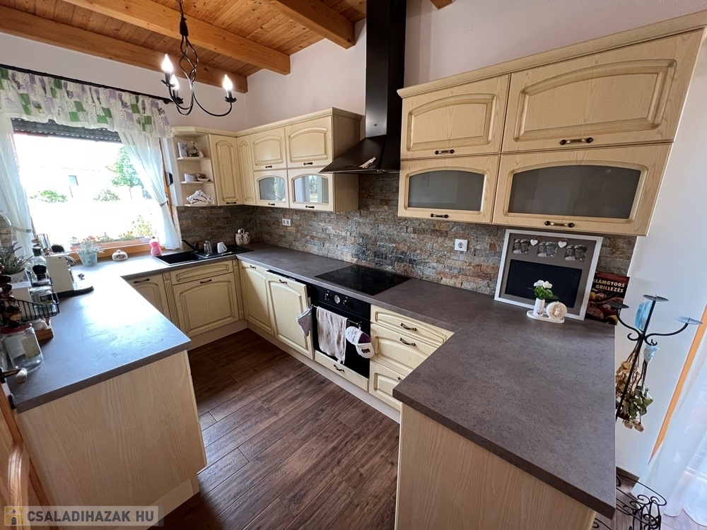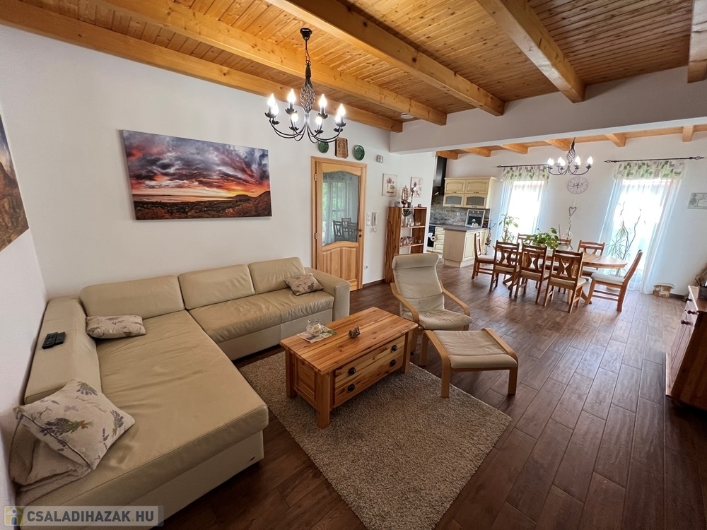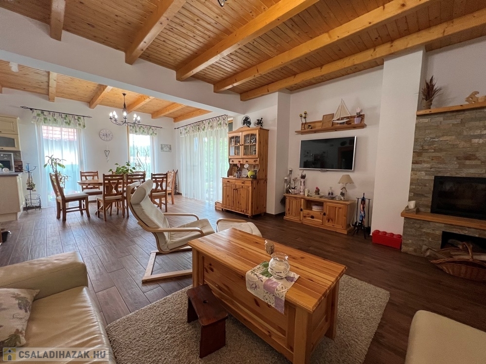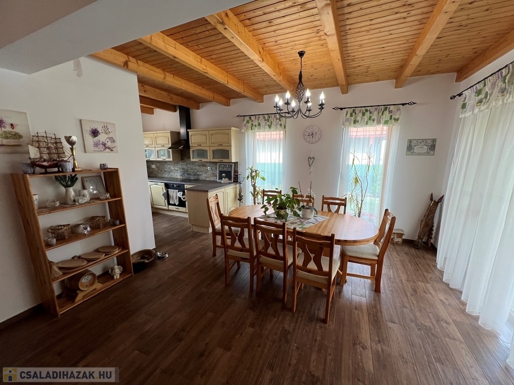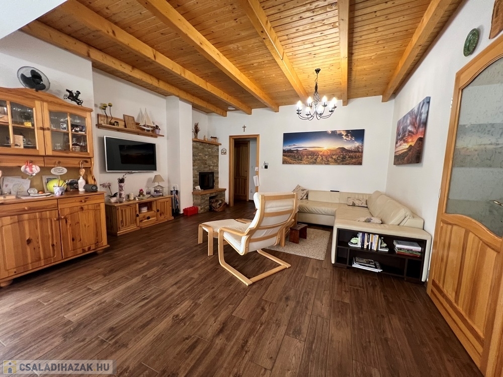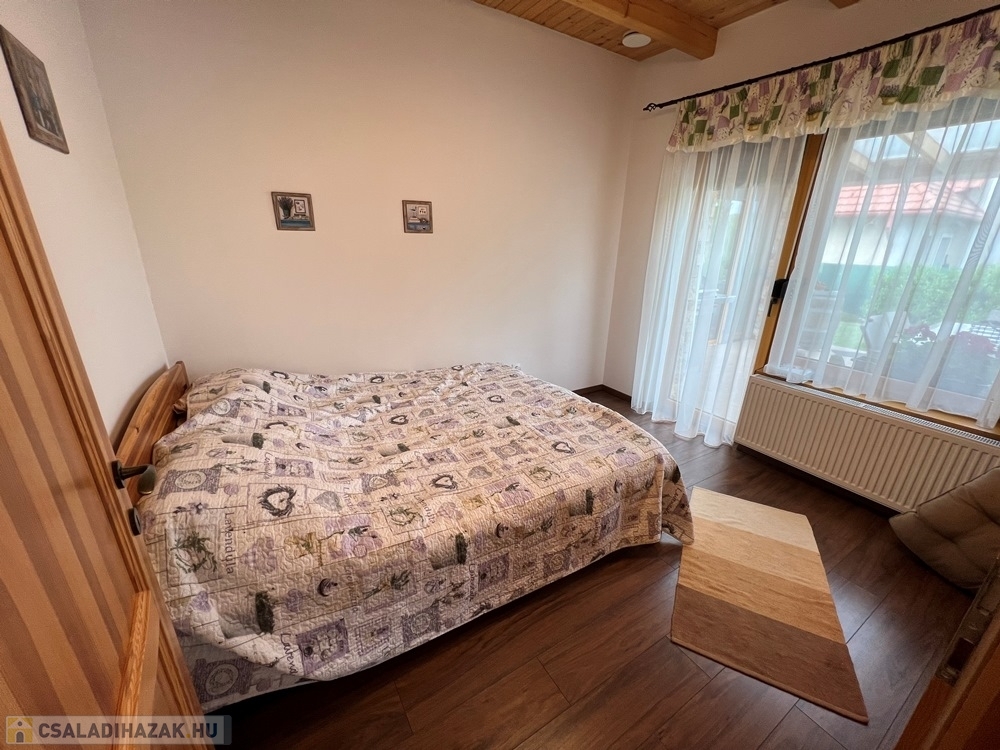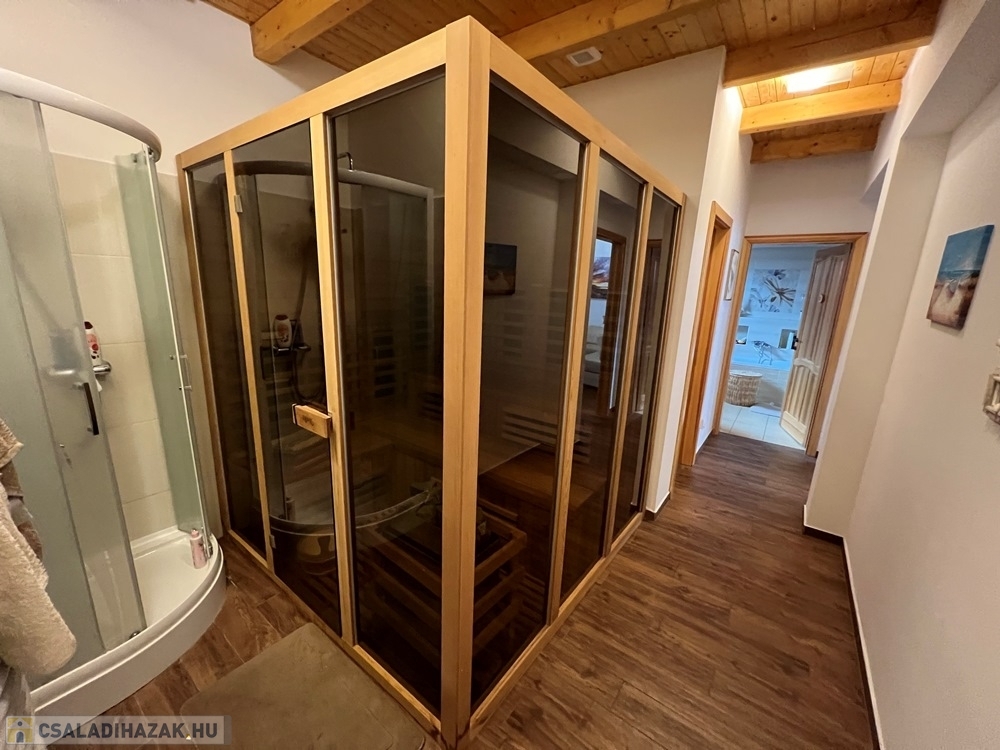 Zánka rendkívül kedvelt, csendes részén, szinte átmenő forgalommentes utcában, újszerű családi házak környezetében, BALATON partjától, strandtól pár perces sétatávolságra, 720 m2-es, összközműves, 22 m széles utcafrontú parkosított telken lévő amerikai konyha - étkező – nappali + 3 hálószobás, továbbá kamrával, háztartási helyiséggel, szauna helyiséggel is felszerelt, KLIMATIZÁLT, 111 m2 hasznos alapterületű, kiváló állapotú családi ház, 34 m2-es DUPLAGARÁZZSAL, 34 m2-es TERASSZAL, NAPELEM rendszerrel eladó.